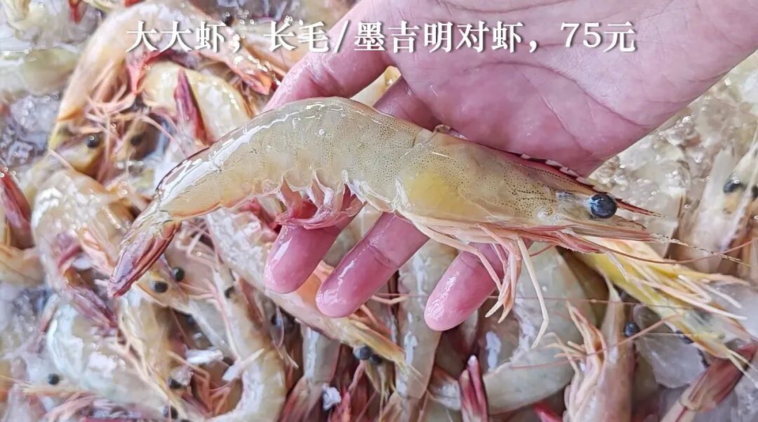 二十、海虾,长毛/墨吉明对虾,大大虾75/斤,大虾50元/斤。