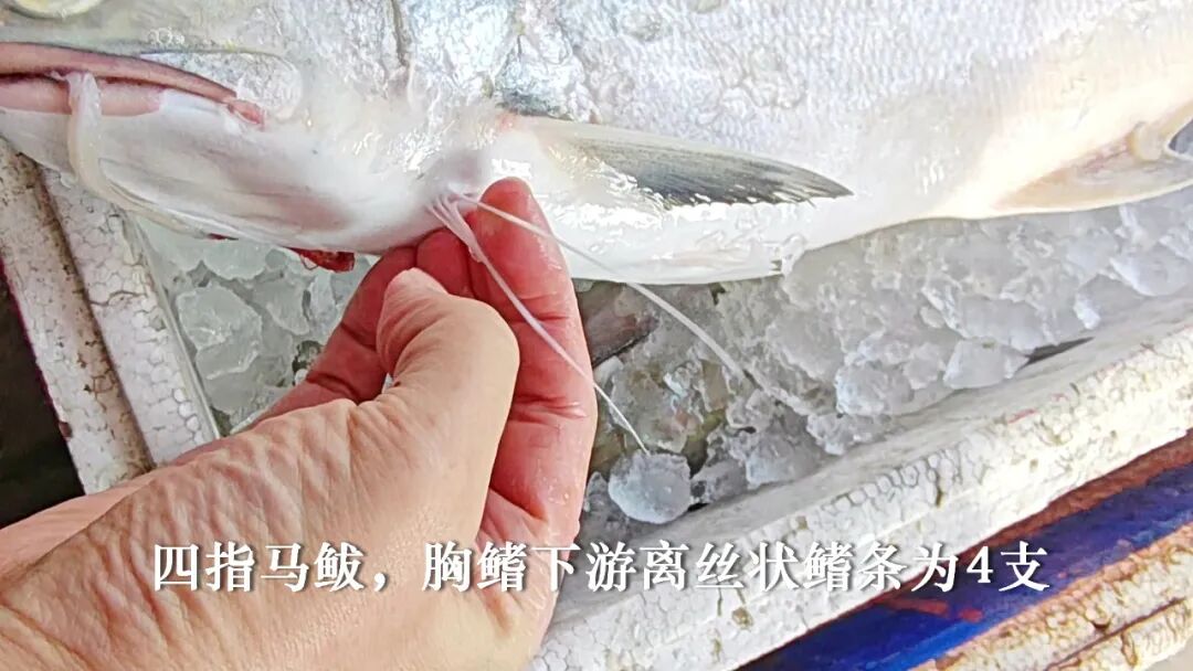 本地四指马鲅/多鳞四指马鲅,其特征是胸鳍下游离丝状鳍条为4条。现在市面有很多便宜的马友咸鱼,多是东南亚进口,其游离鳍条为5条,可以留意一下。