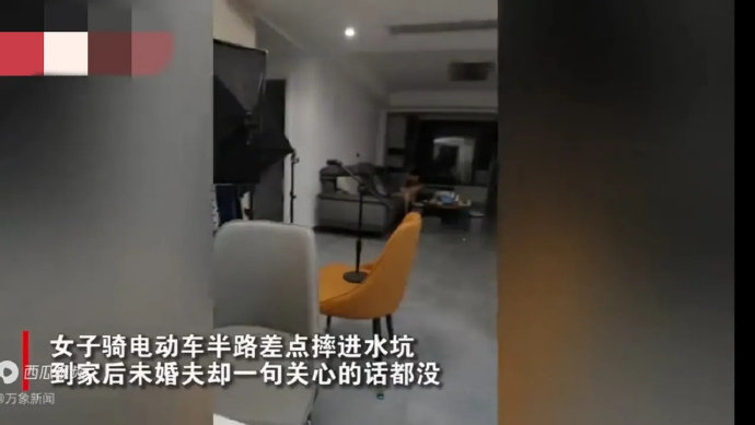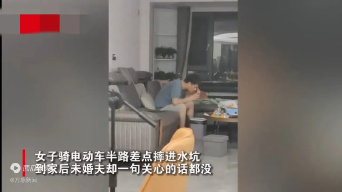 在半路还差点摔进水坑,一路上未婚夫不仅没有打过电话,回到家也是不管不问,一句关心的话都没有。他自己一个人却端着碗坐在沙发上一边看吃饭,一边看电视。