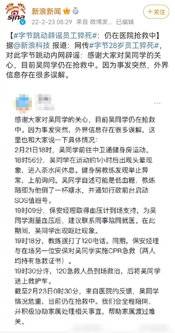 一边是老婆发帖,人已经去世了。。一边是公司辟谣正在抢救,这。。。字节和心脏只能跳动一个