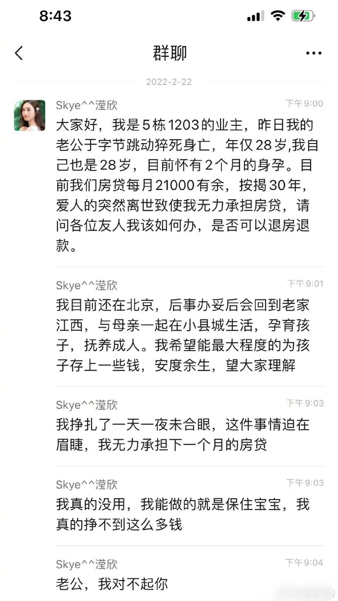 网传,妻子也是28岁,怀有两个月身孕,应该是刚买房没多久,还没交付,房贷每月21000多,程序员老公是经济支柱,老公没了,房贷也就付不起了,称还有30年房贷。 :事故发生在健身房,仍在医院抢救中。