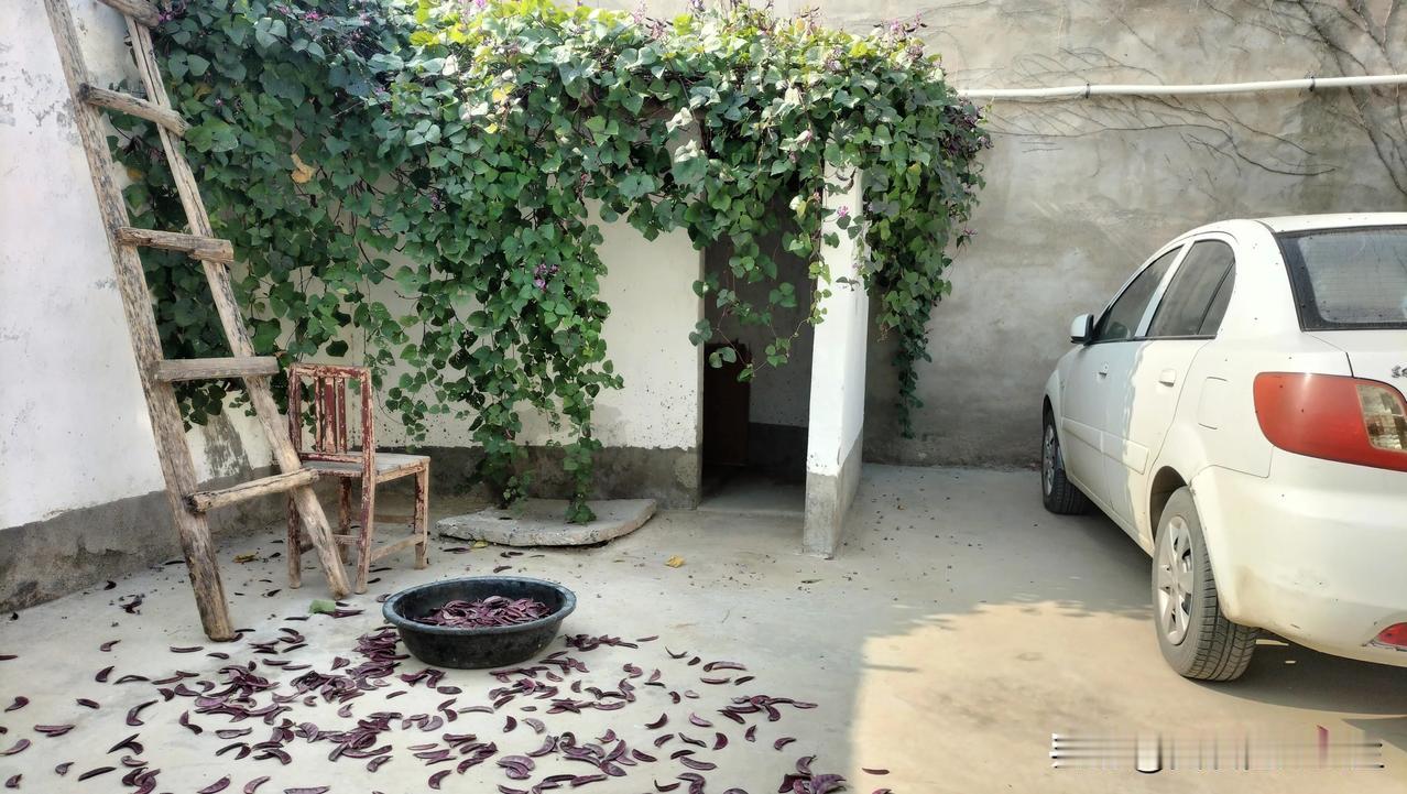 发愁!紫梅豆采摘太多啦,根本吃不完! 老家的梅豆好多几天没摘了,今天上午回家,看到屋顶上面爬满了梅豆,看着就满心欢喜。没得说,搬来大椅子、短梯子,开开心心摘梅豆! 摘梅豆的过程,就是享受丰收喜悦的过程,边听歌边摘,不知不觉(一不小心),摘了一大盆。这个盆子,是我们用来洗床单的大盆子,这一大盆,得有好几十斤! 这可怎么办呢?吃又吃不完! 老婆说,别着急,我有办法!不一会儿,把东边两家邻居领过来了,分别端个淘菜筐过来了,每家分一大筐。 还有大半盆,找几个袋子装起来,给同事们分一分吧! 把这个梅豆切成细长条,加点辣子,炒好了之后,用薄饼卷起来吃(我们许昌老家这儿称它为“烙馍卷梅豆”),非常过瘾!
