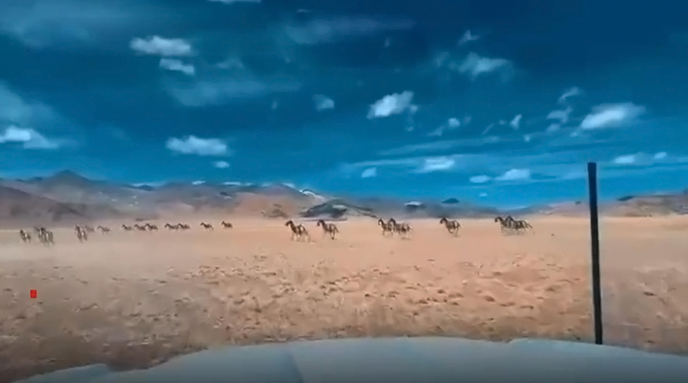 被这突如其来的一幕吓到的藏野驴,纷纷拔腿就跑,男子见状也是继续疯狂追逐着野驴群。事后男子还将视频发到了网上进行炫耀,从视频中我们可以看到大量的藏野驴拼命奔跑。