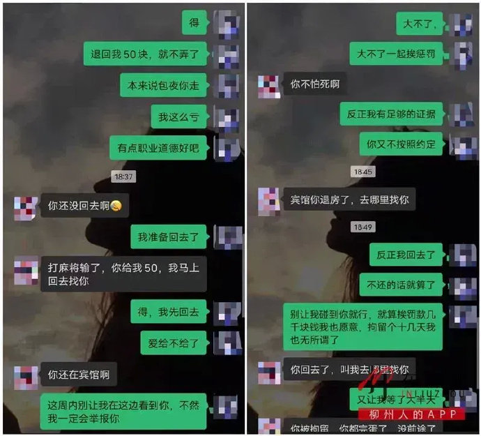 而被抓的失足女黄某则委屈表示:当晚我已经陪了他2小时,我肚子饿,出去吃饭,但他觉得600元有点贵,想要退款50元。我感到他不讲道理,才跑了! 18岁的小伙却为了区区50元,选择报警!最终,两人都被警方抓获!目前,二人均被行拘10天。 此事一出,纷纷引起网友热议。 很多网友表示:这个18岁男孩真是奇葩,为了50元报警,双方都被拘留何必呢? 天下之大,无奇不有,一个18岁小伙是如何对一位47岁老大妈感兴趣呢?口味太重了!对于此事,您怎么看?