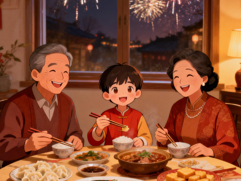 在凛冽的北风里贴对联、挂挂钱、安彩灯,手冻麻了,牙直打颤,也得一样不落地置办整齐。有时候想,要是把这股执着劲儿用在工作上,怕也能干出点名堂吧。年前母亲就忙活开了-家养的溜达鸡肉质紧实,猪肘肉蘸点蒜酱,香得没话说,皮冻也做得Q弹。她张罗了一大桌子菜,父亲把酒杯倒满,冲我一扬:“来,小子,喝点!”