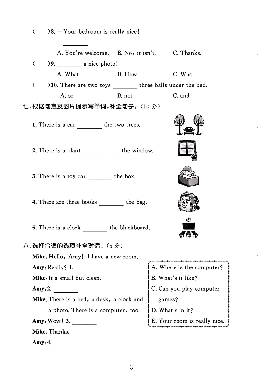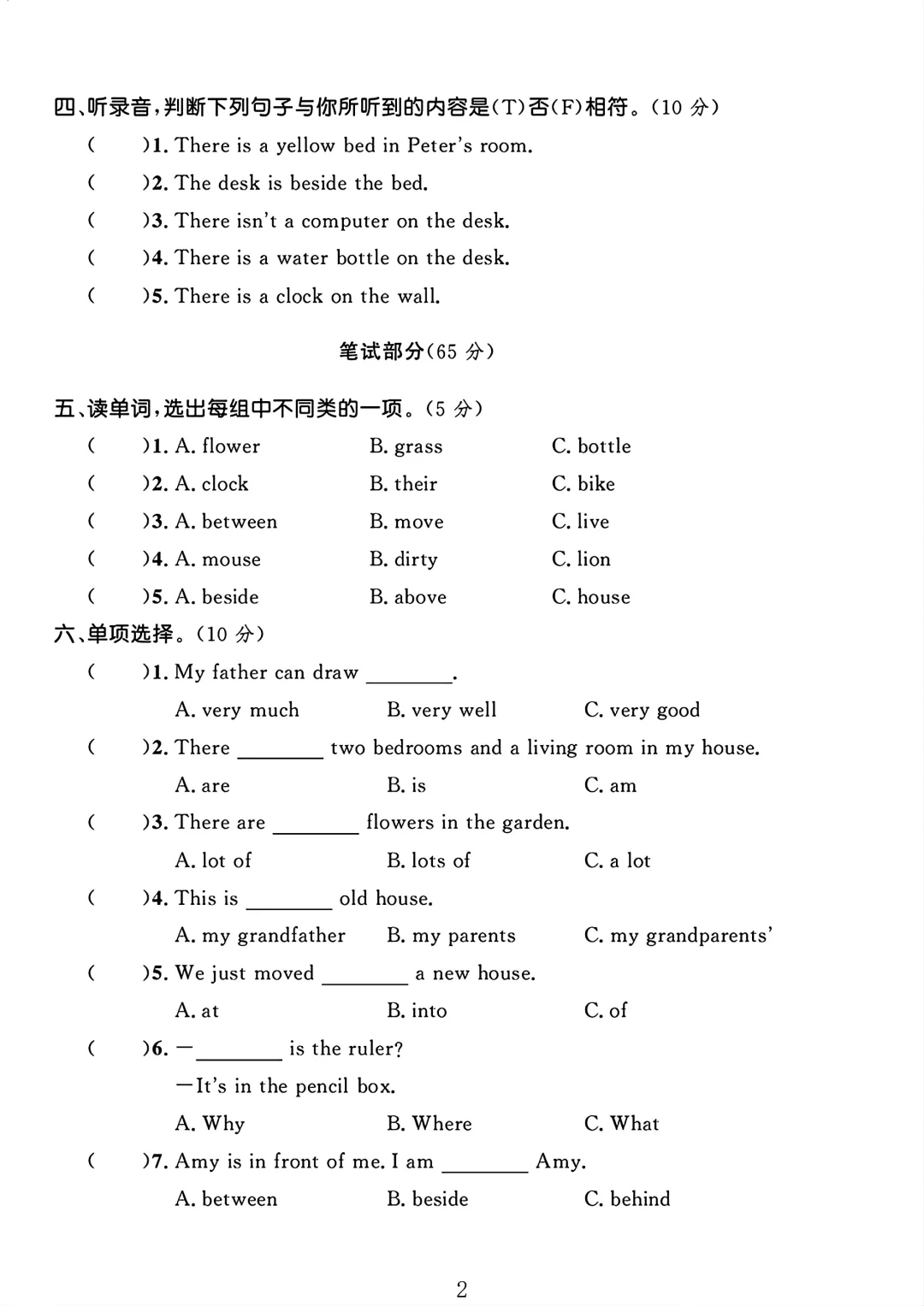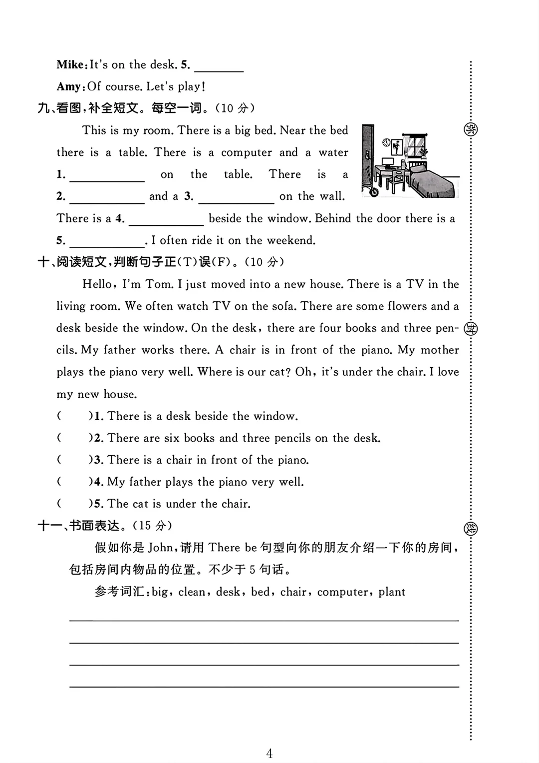 人教版 五年级上册英语 单元测试 试卷 第五单元测试卷 试卷 电子版可打印