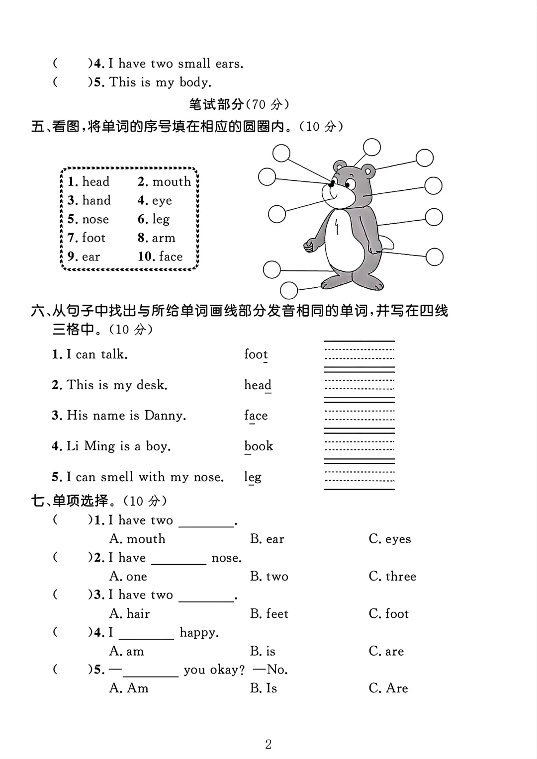冀教版三年级英语上册第5单元测试卷 1