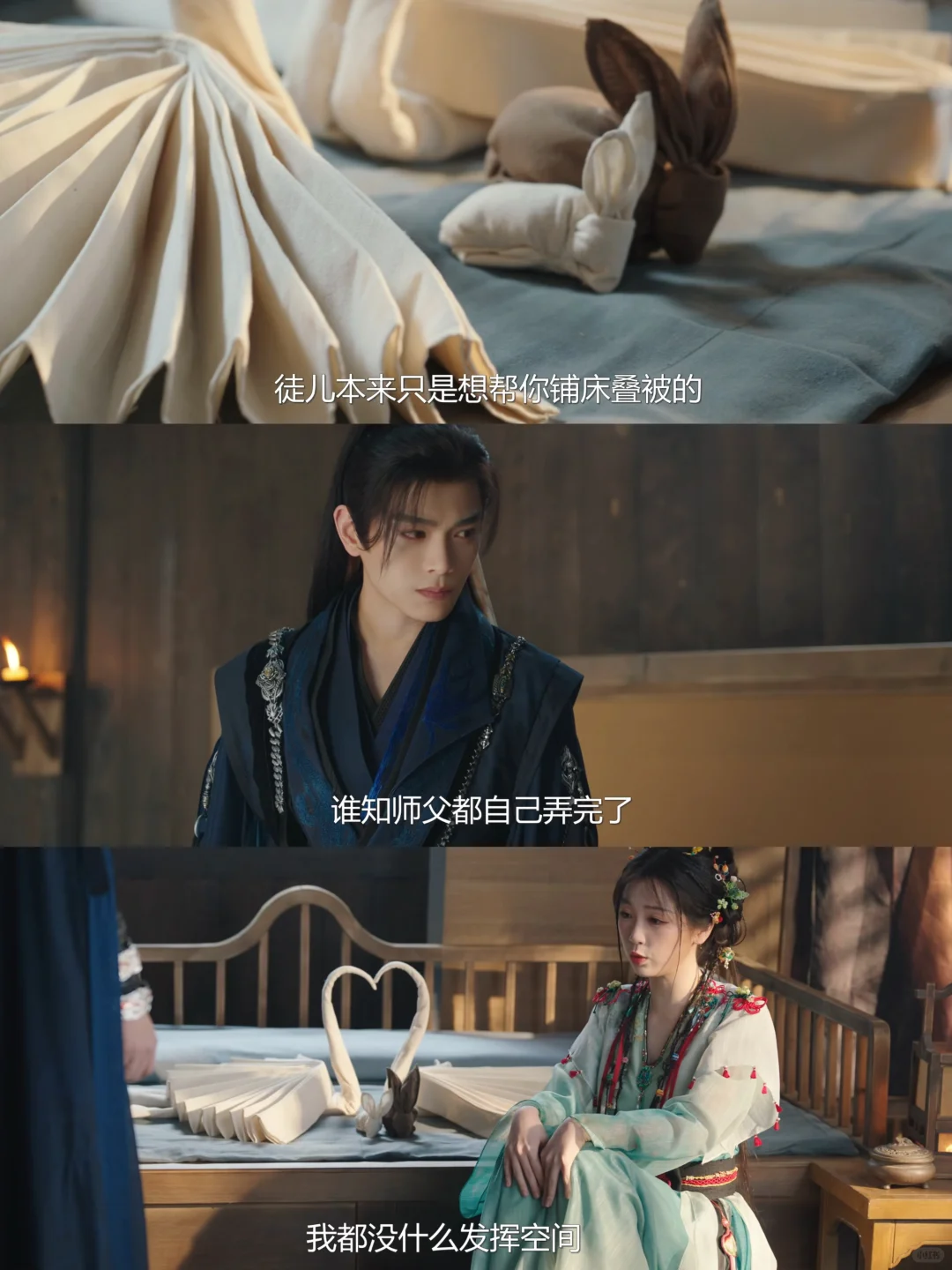 为了攻略慕子期,凌妙妙决定主动出击为他做些什么事 一大早把慕子期的被子都折成了可爱小玩偶☺️☺️☺️ 抱着“天下没人能拒绝傻白甜小徒儿的”偶像剧套路,等着慕子期回来的夸奖呢[doge] 凌妙妙:稳的 慕子期:谁让你碰我床了 凌妙妙脸颊比心➕wink➕大象玩偶,还让好感度下降了,努力努力白努力。慕子期直接把这些玩偶都🔥了,妙妙又怕好不容易上升的好感度再下降,只能乖乖把灰扫了🥹 们妙是在酒店上过班吗,这天鹅折的有模有样[黄金薯R]