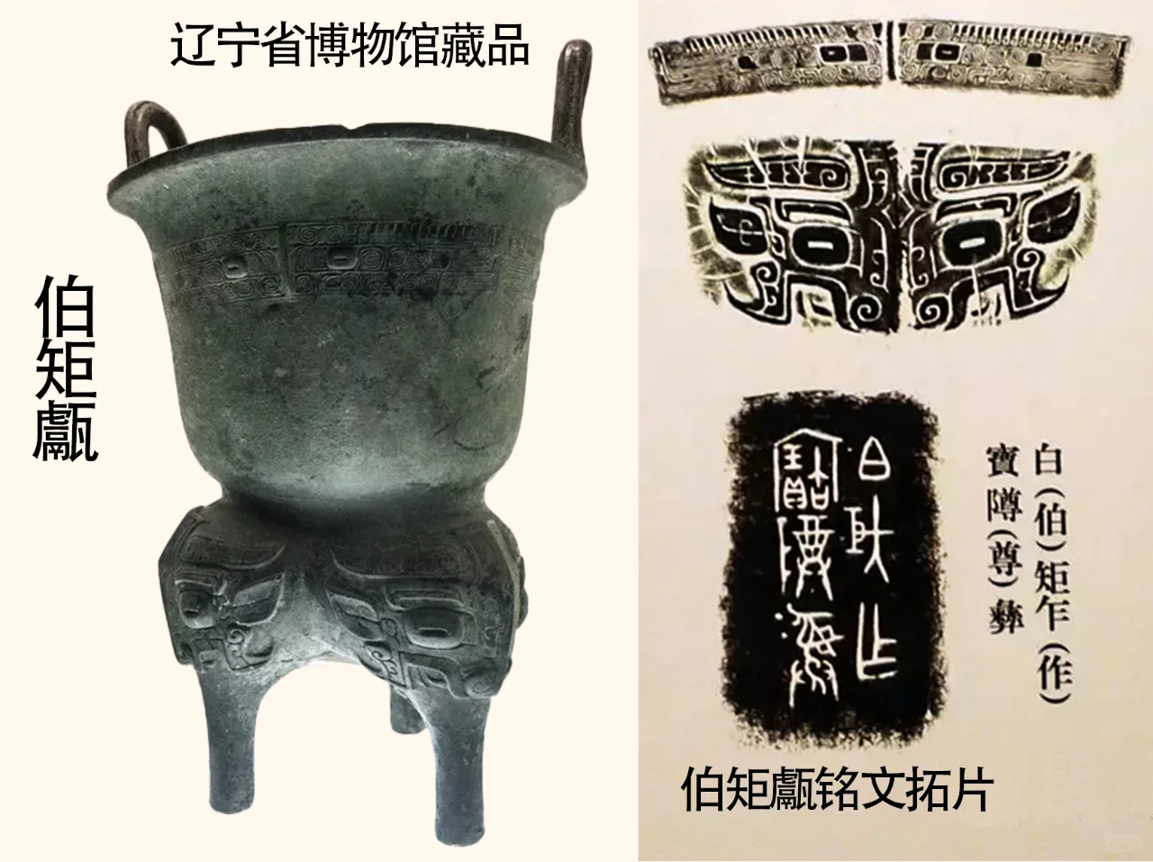 2、图三,喀左窖藏器,伯矩甗铭文:伯矩作宝樽彝。