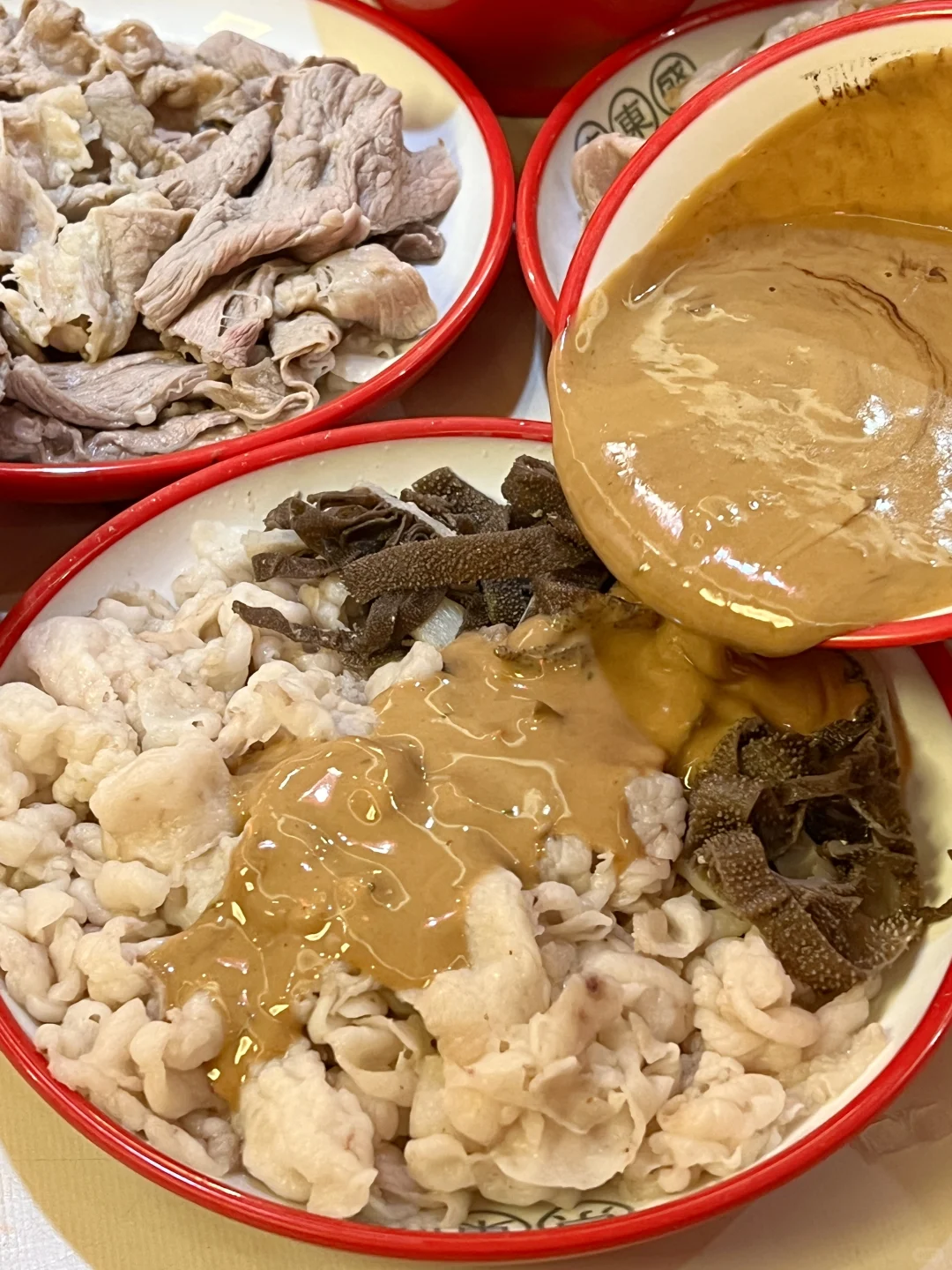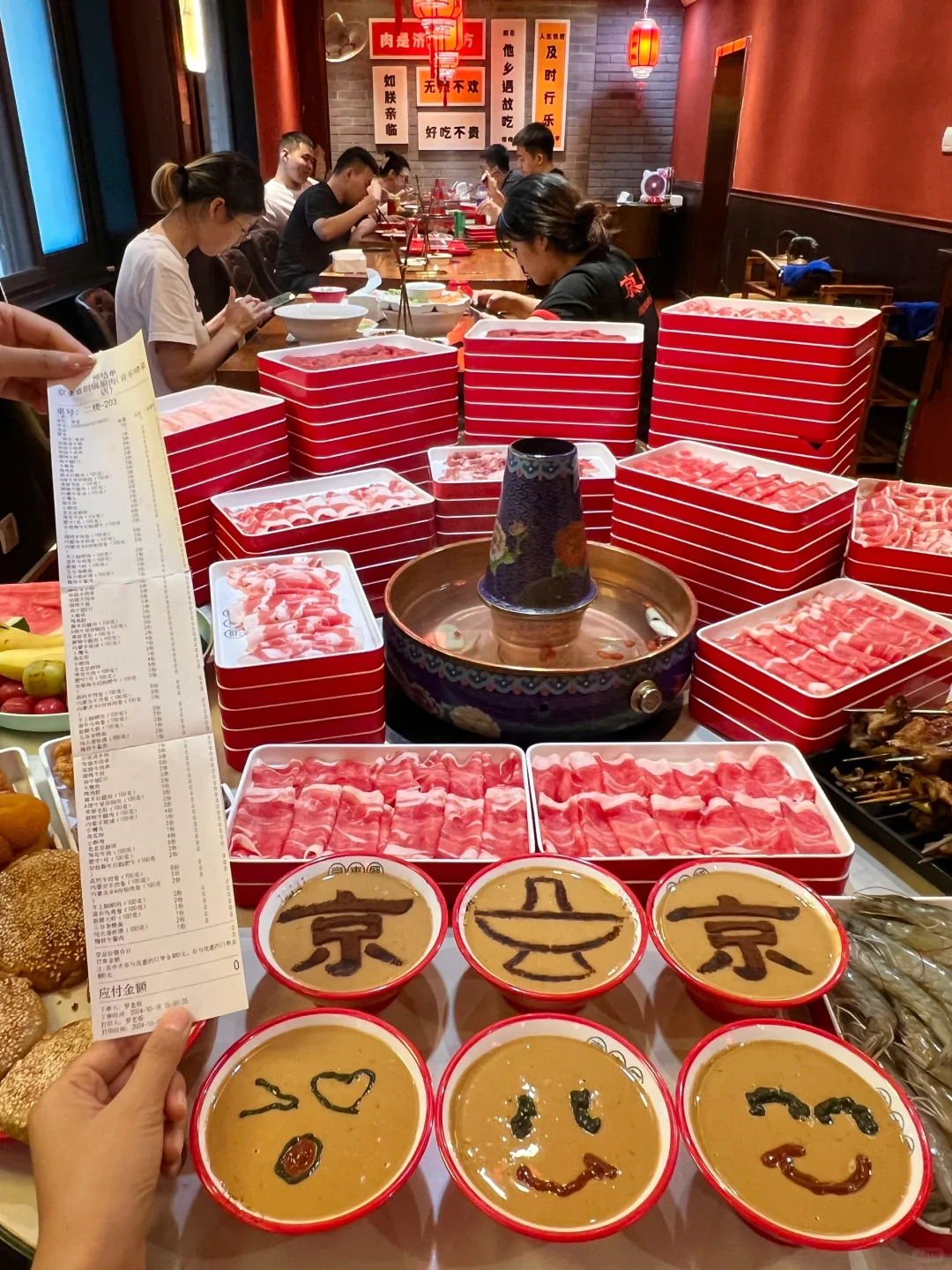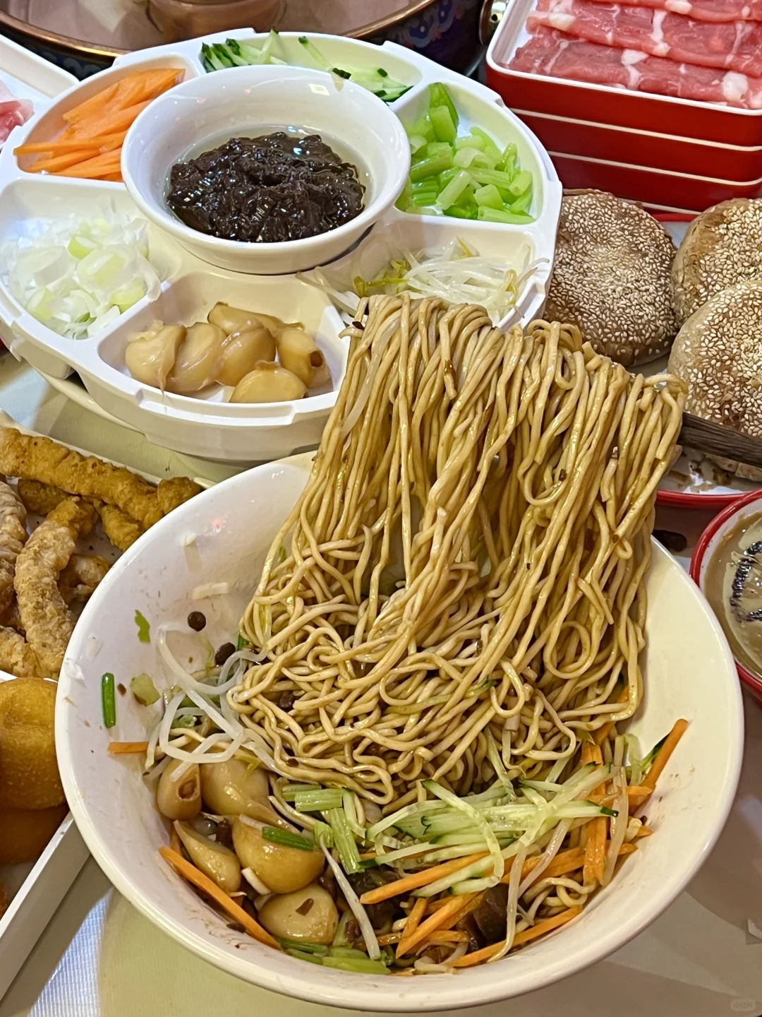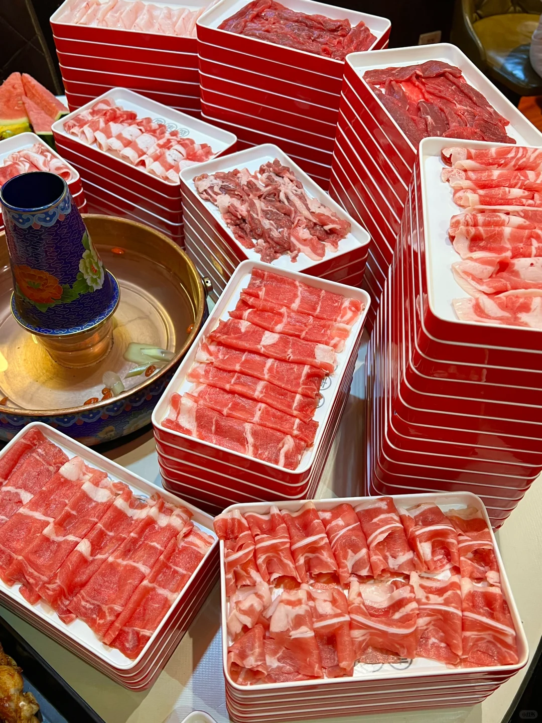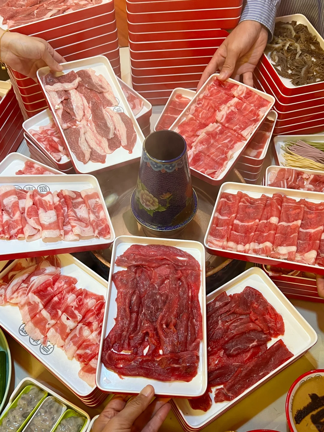有爱老北京铜锅涮肉这一口的嘛!呜呜🥹我真的太爱了!免费🆓的清汤锅底!涮肉、烤串、海鲜、麻饼、正宗的老北京炸酱面…统统随便吃!100r出头每次都是吃到扶墙出~下次生日🎂再去吃 半价61r的快乐!!! ✔️雪花牛肉、羊后腿肉、鲜嫩羊肉、牛里脊嫩肉…都是当天鲜切的 10多种肉可以选择呢!清汤锅底涮肉 蘸上麻酱和韭菜花 嘎嘎嫩!每一口都香到停不下来! ✔️还有烤串也吼吼吃😋!牛蛙个头敲大!香嫩入味我直接连吃三个哈哈 再来上一口糖蒜🧄太落胃咯!吃完可以直接去西湖边消食!