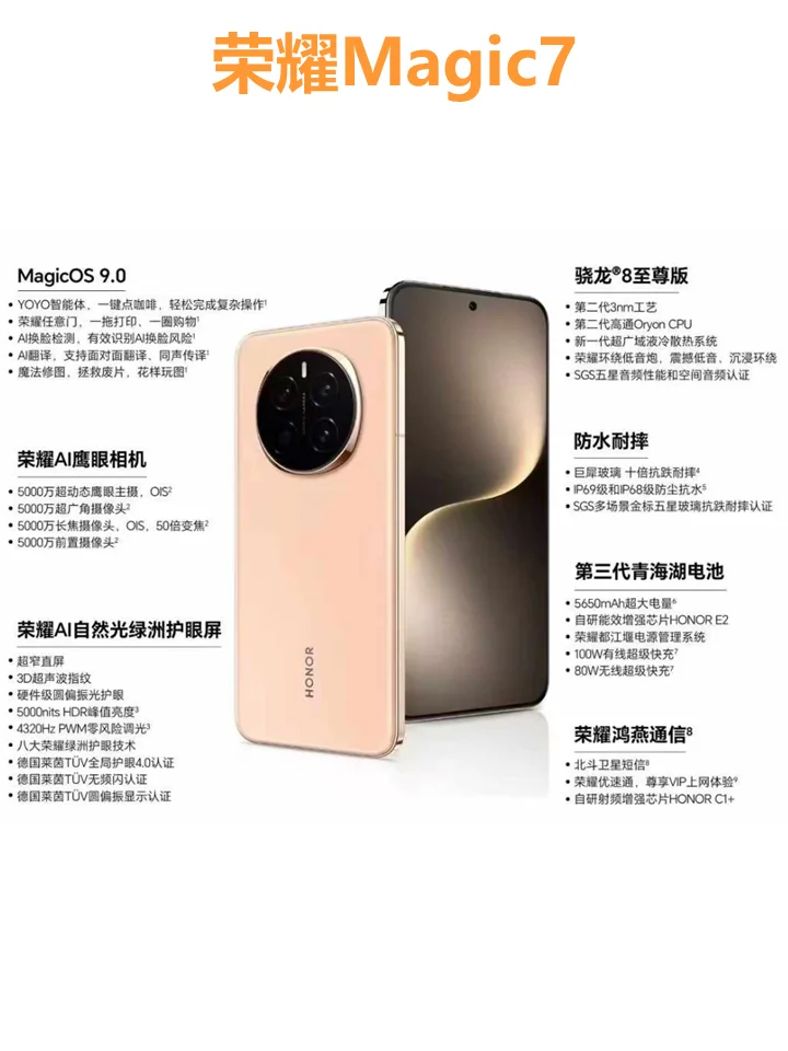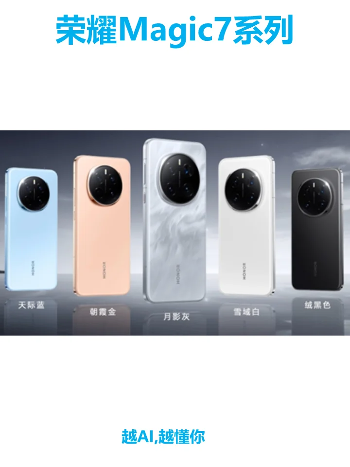 - 荣耀Magic7系列搭载全新升级的荣耀AI驭光引擎,全系新增AI超清雅顾人像模式。
