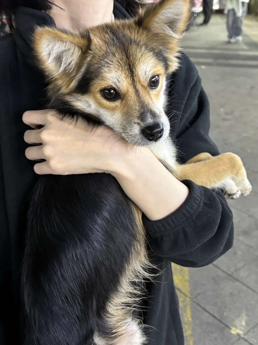 跑了几百米,小黑跳向栅栏缝,试图钻进小区里,但玩具比栅栏缝要宽,他一下被玩具弹了回来,在这个瞬间女友扑上去把玩具抢救了回来。