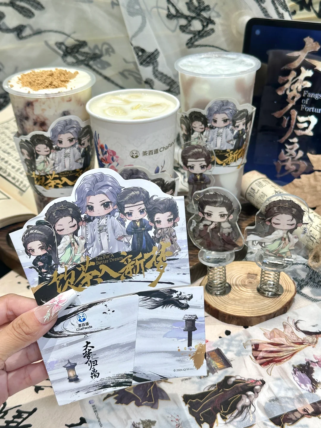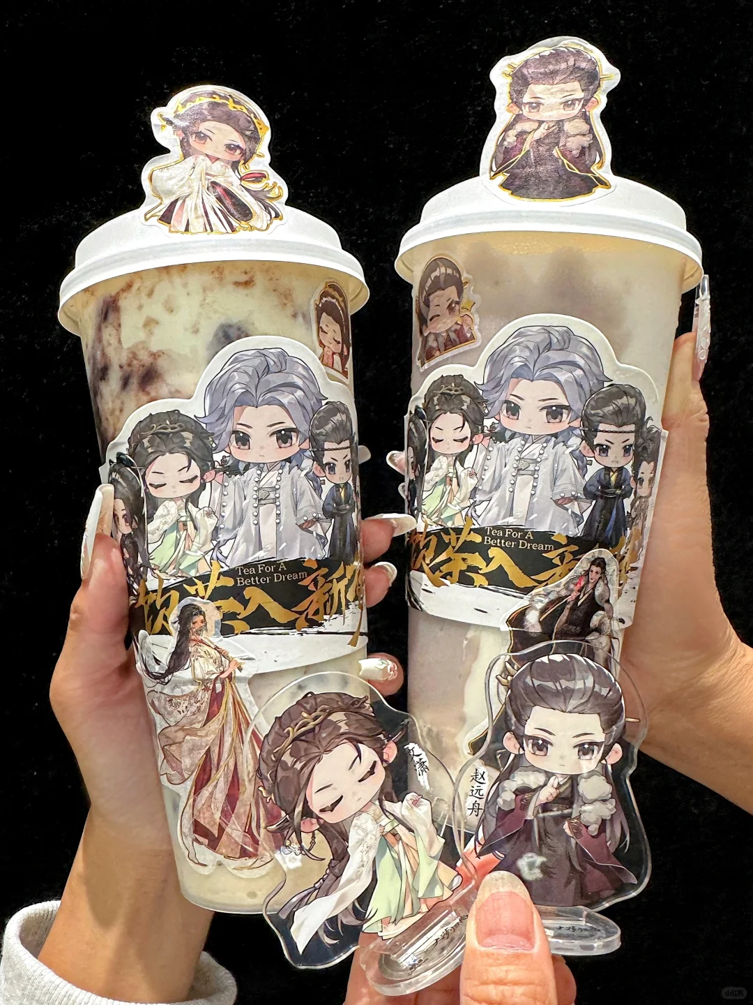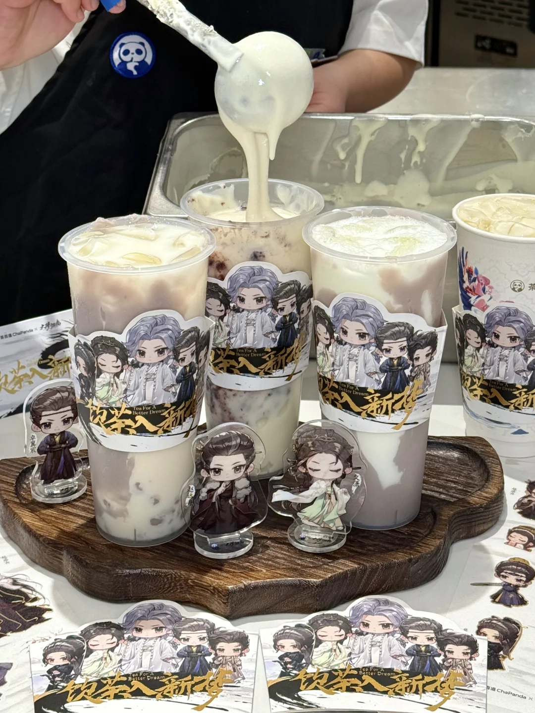 绝!!茶百道大梦归离联动,这不是梦!! 热播剧一上线,联名就光速赶来[哇R][哇R] 有联名摇摇乐、贴纸和杯套!文潇、赵远舟、卓翼宸3款Q版人物摇摇乐!真嘟太可爱惹!! 这次贴纸一袋两张,立绘和Q版都吼吼看! ⏰11.2上线!!各位缉妖司外援记得冲 · 8款联名饮品:桂花金萱奶冻、豆乳米麻薯、椰椰桂花乌龙、超厚芋泥奶绿、超厚芋泥鲜奶、招牌芋圆奶茶、茉莉芭乐、活菌·芭乐酸奶昔! 好喝轻负担,打工人摸鱼追剧也毫无负担噜✌️