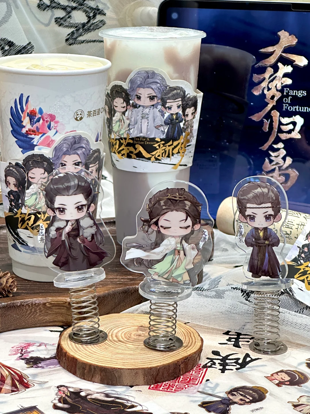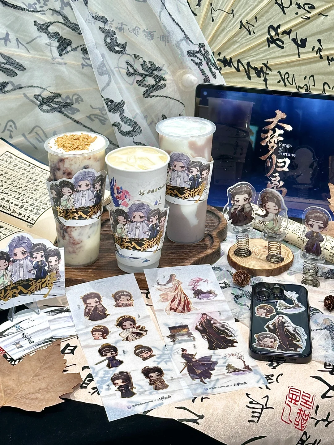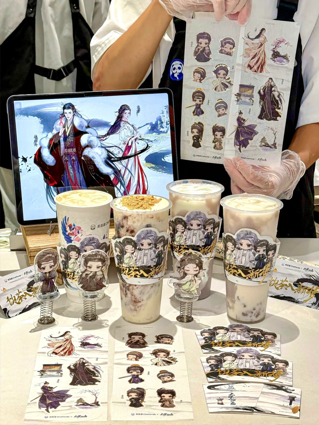 绝!!茶百道大梦归离联动,这不是梦!! 热播剧一上线,联名就光速赶来[哇R][哇R] 有联名摇摇乐、贴纸和杯套!文潇、赵远舟、卓翼宸3款Q版人物摇摇乐!真嘟太可爱惹!! 这次贴纸一袋两张,立绘和Q版都吼吼看! ⏰11.2上线!!各位缉妖司外援记得冲 · 8款联名饮品:桂花金萱奶冻、豆乳米麻薯、椰椰桂花乌龙、超厚芋泥奶绿、超厚芋泥鲜奶、招牌芋圆奶茶、茉莉芭乐、活菌·芭乐酸奶昔! 好喝轻负担,打工人摸鱼追剧也毫无负担噜✌️