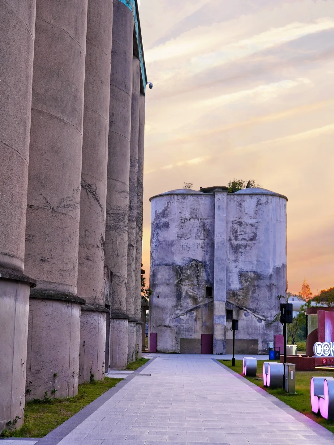 距离酿造厂步行5min的距离。这里是由粮仓建筑改造的文化创意园,有儿童游乐设施,还有告白气球歌词墙,再往里走是构想几何书店和咖啡店。