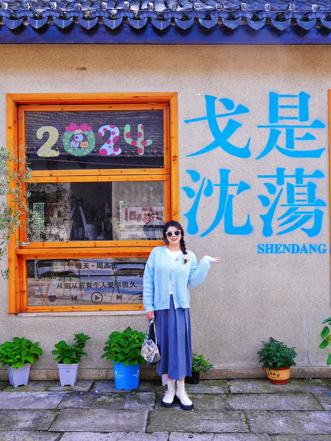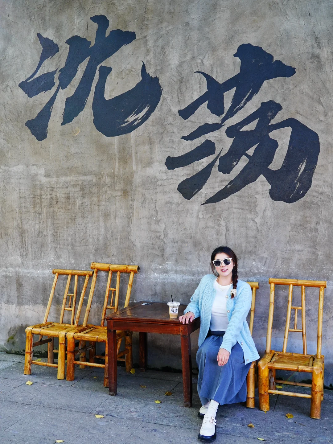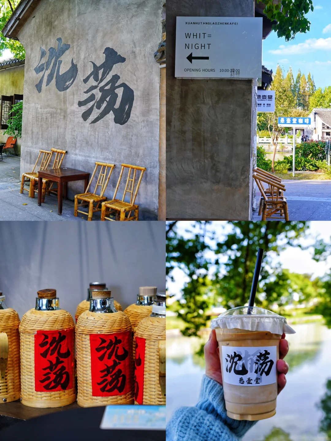 2️⃣悬壶堂咖啡:打卡“沈荡”大字墙,坐在河边的香樟树下,点杯咖啡或一壶茶,就能安静地待一下午。
