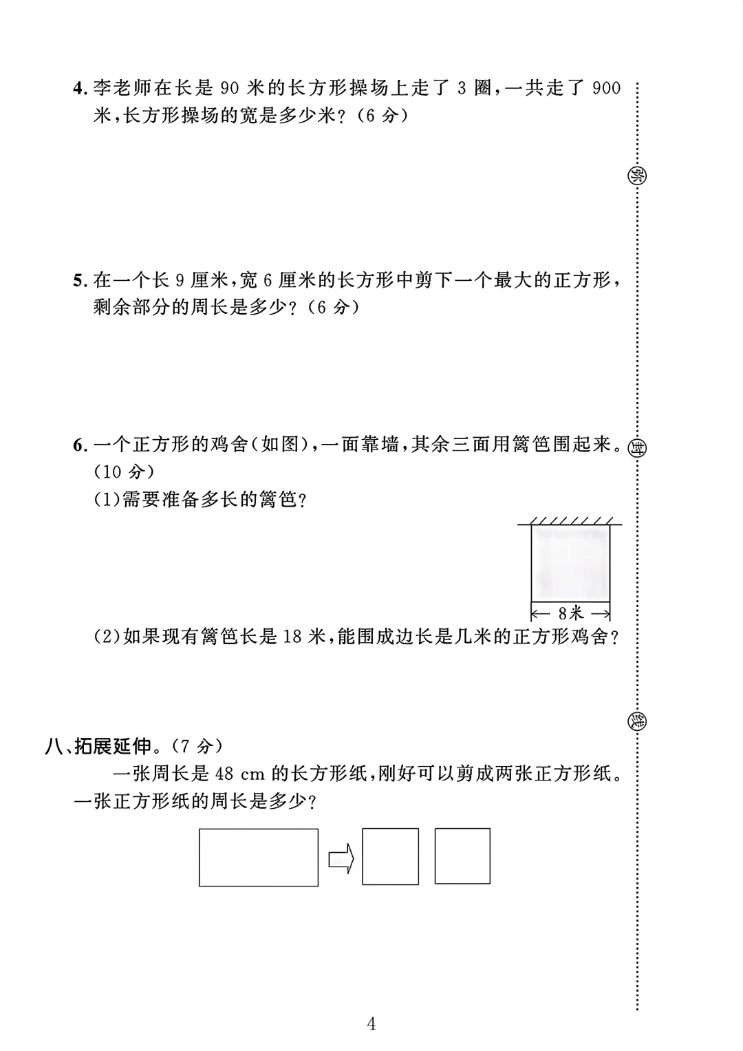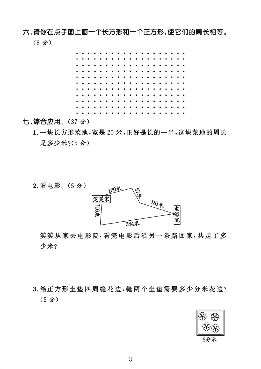 北师大版数学 三年级上册数学 单元测试 第五单元测试卷 电子版可打印 试卷