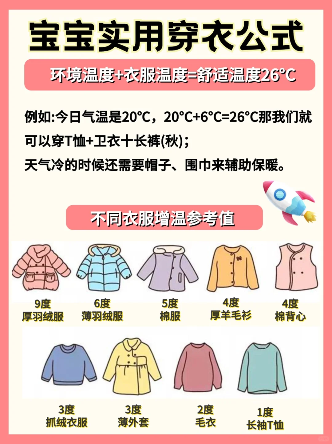 ✅26度是人体感觉舒适的温度🌡,不管在哪里,都可以用这个公式俩应对多变的天气👇🏻
