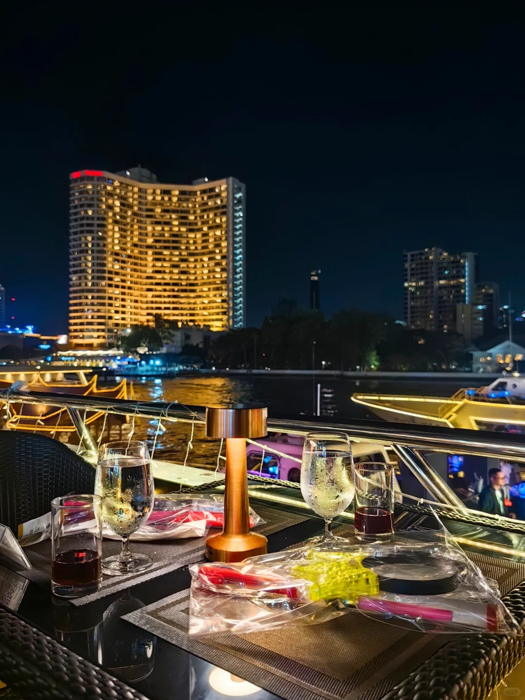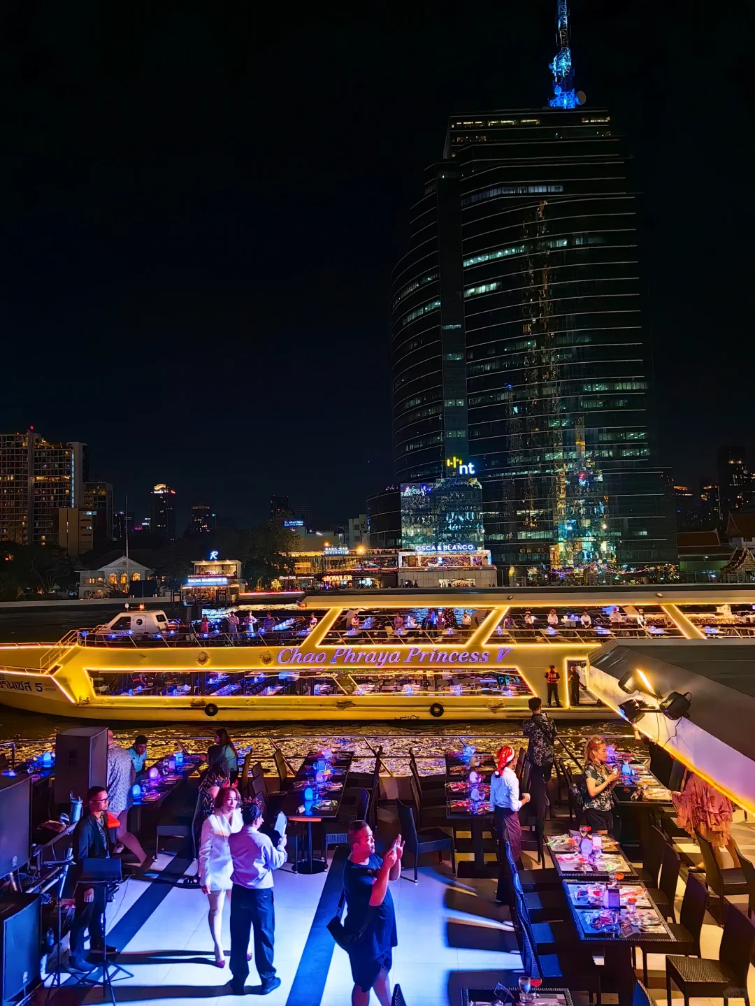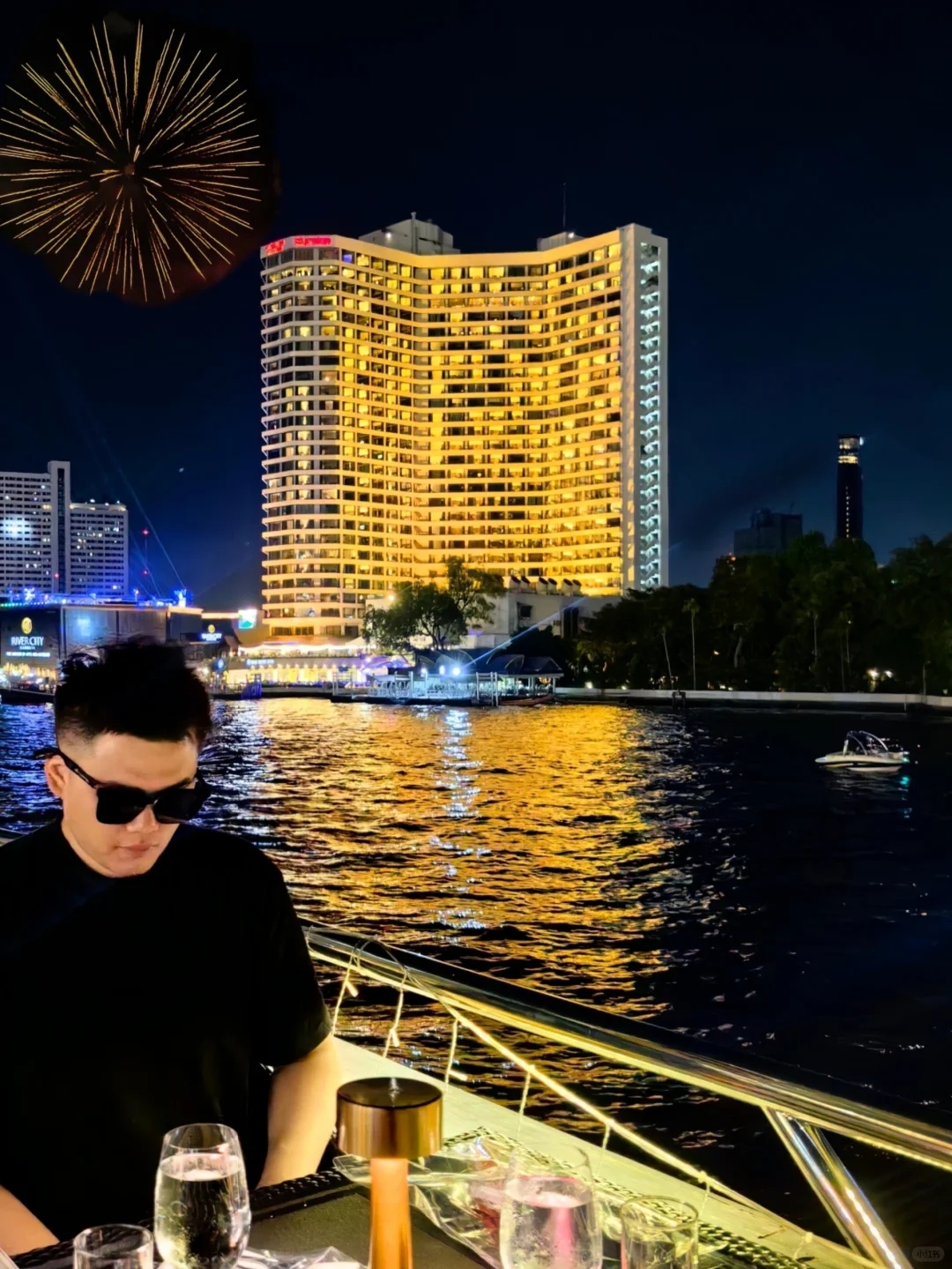曼谷跨年看烟花首推湄公河跨年游轮❗️这个一定一定要提前两个月预定❗️不然就只能等是不是有当月新下水的游轮了。国内主流平台都有可以预定,但是如果要选座位建议直接到游轮官网预定。位置一定要定甲板(rooftop),虽然甲板肯定是要贵一些但是如果没买到甲板只能隔着玻璃看烟花了,而且甲板位一般很容易售罄。选座位一定要像我们一样最好选船边的side sit(图3️⃣)❗️游轮最新最豪华的截至去年是是我们当时预定的opulence,自助餐比较一般但是环境超级好,游轮上还一直有表演,我们在官网定的5300🐷一个人,不知道今年会不会有更豪华的新游轮下水。