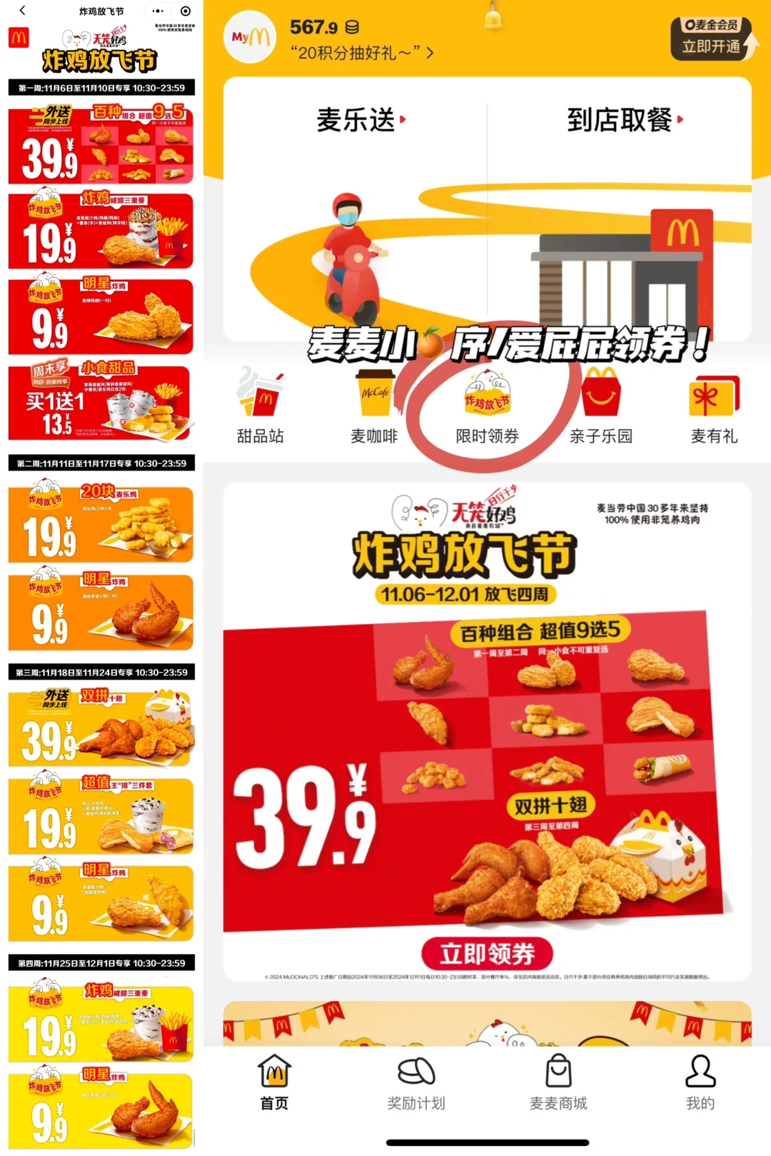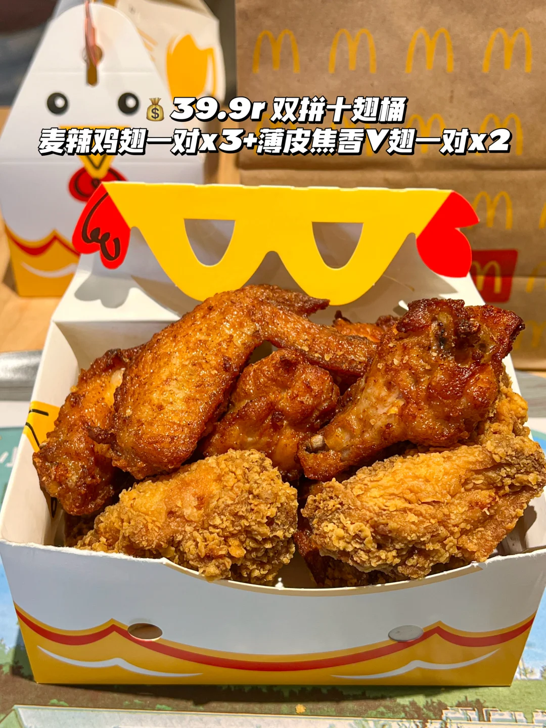 10/28-11/3!!坠后五天!!!麦麦炸鸡自由节别错过了啊啊啊!!!接下来几天我要天天宠幸他🥹 👇👇麦麦鸡毛看这里‼️ ✔️39.9r 双拼十翅桶(麦辣鸡翅一对*3+Vwings一对*2)而且是可爱的小鸡桶包装噢,平时都要49.9r!赚啦赚啦! ✔️19.9r 超值王“排”三件套(大鸡排➕香芋派/菠萝派➕奥利奥/草莓/阿华田麦旋风) ✔️9.9r麦麦脆汁鸡咸香酥脆一口爆汁!可以搭配11.9r新升级的板烧鸡腿堡/14.9r微辣脆爽🌶️的酸笋板烧鸡腿堡 20多r的工作餐就水灵灵的解决了! 不愧是日行千步的无笼好鸡🐔口感吃起来紧实鲜嫩~快和姐妹👭一起去实现炸鸡自由吧!! 哦对了!听说麦麦现在又有炸鸡放飞节了!连续狂欢25天,每周都有不一样的优惠套餐,现在就能去麦麦的小🍊序/爱屁屁领券啦!11月6日开始核销!大家都不要放过这个麦麦! 我爱的咔滋脆鸡腿堡11月6日回归!!麦麦你尊嘟好懂我们的心!