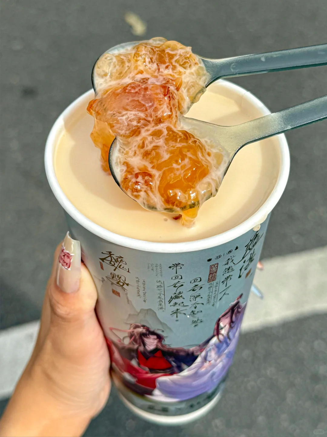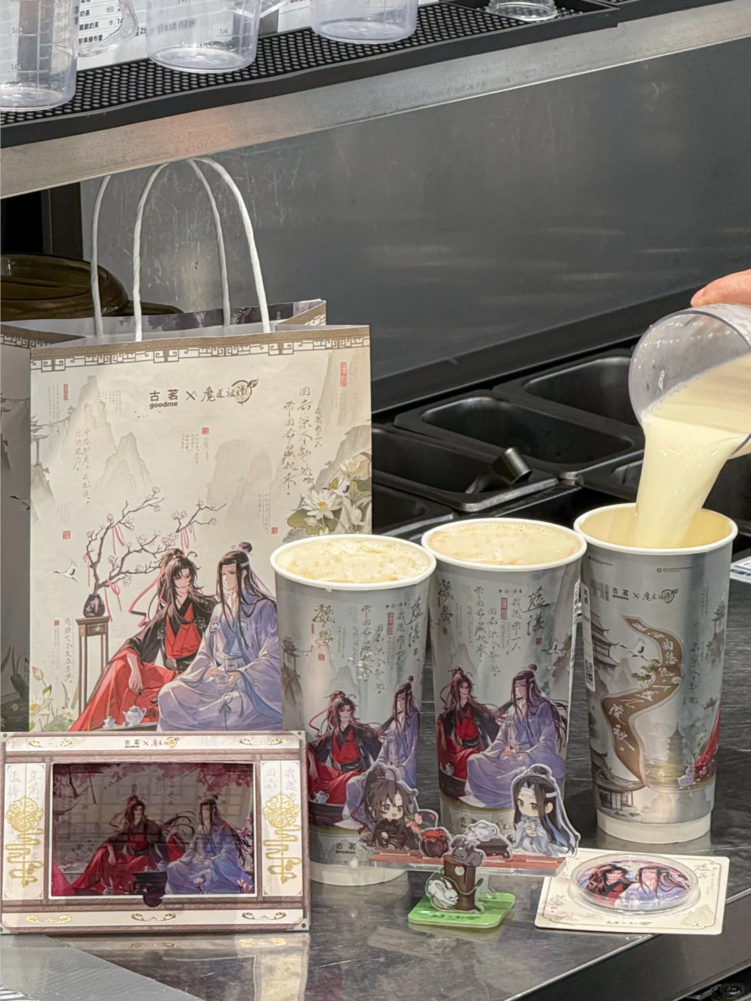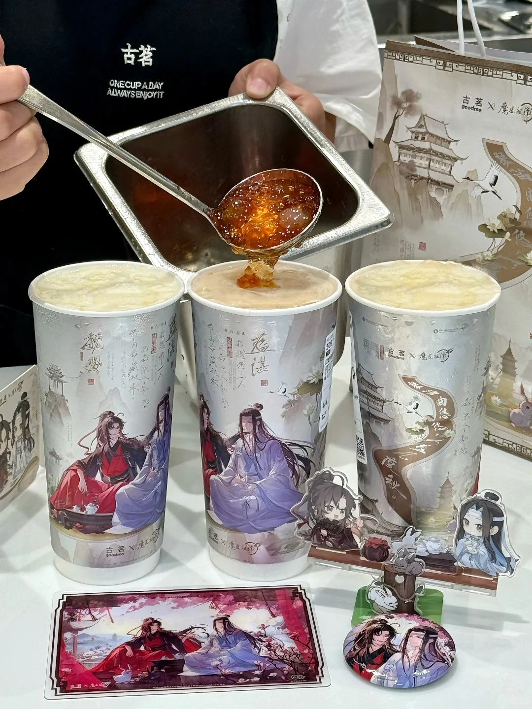 盼星星盼月亮终于等到了白月光回宫!古茗✖魔道祖师动画联名!! 排!狠狠排!这一次我要全部拥有 联名限定包装有联名杯、吸管套、吸管贴、保温袋、纸袋!内侧展开是云深不知处画面!! 还有周边太太太用心了呜呜 同时,还有定制小票和标签贴,真嘟好细节啊🥺 · 新品【红岩桃胶炖奶】 有被惊艳到!!底部的溏心桃胶弹糯顺滑吼吼次!搭配大红袍茶香、鲜牛乳奶香,口感好丝滑!冷的热的都好喝!!润养一整个秋冬✌ 除了新品还给大家推荐几杯轻乳茶! 都是精选好茶和优质牛乳,口感顺滑好喝,盲点不踩雷!~ ✔千里暮山红、十里江南桂、云岭茉莉白、桃隐乌龙香