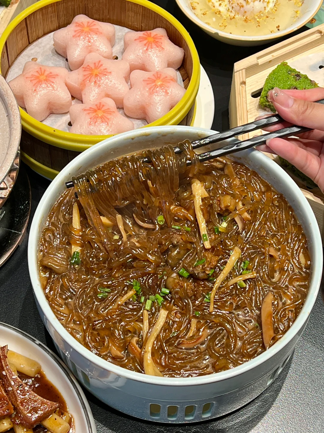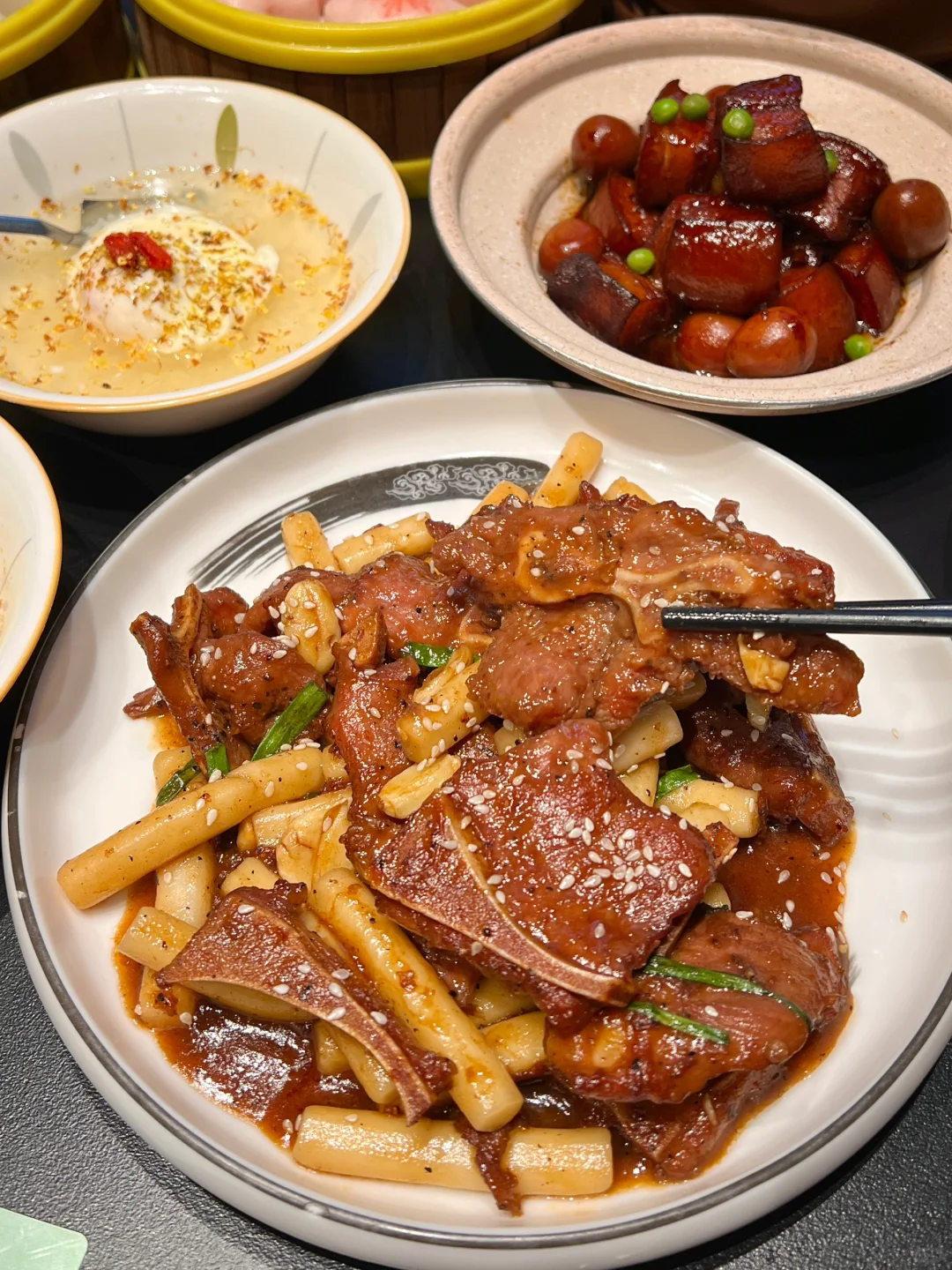 就在国际商贸城附近 吃完可以去买买买哈哈🛍️在这家吃到了最近hin火🔥的手作老酸奶!顶部的脆脆敲碎了和老酸奶一起拌着好好吃🤤 ✔️好吃到发晕的牛肉萃饭!米饭粒粒分明搅拌后都裹上牛肉🐂充满锅气 直接炫三大碗~ ✔️江南红烧肉 撕开软fufu的馒头 夹入甜滋滋的红烧肉🥹肉吃完了馒头继续蘸着汤汁吃!这也太快乐了吧! ✔️芝麻糯米块 沾上芝麻软糯香甜 趁热吃还能拉丝!又是被糯叽叽硬控的一天!! 猪排年糕、沙蒜豆面、桂花酒酿水铺蛋…忙点都好吃😋而且环境也棒棒的 朋友聚会🧑🤝🧑公司、家庭聚会都适合~