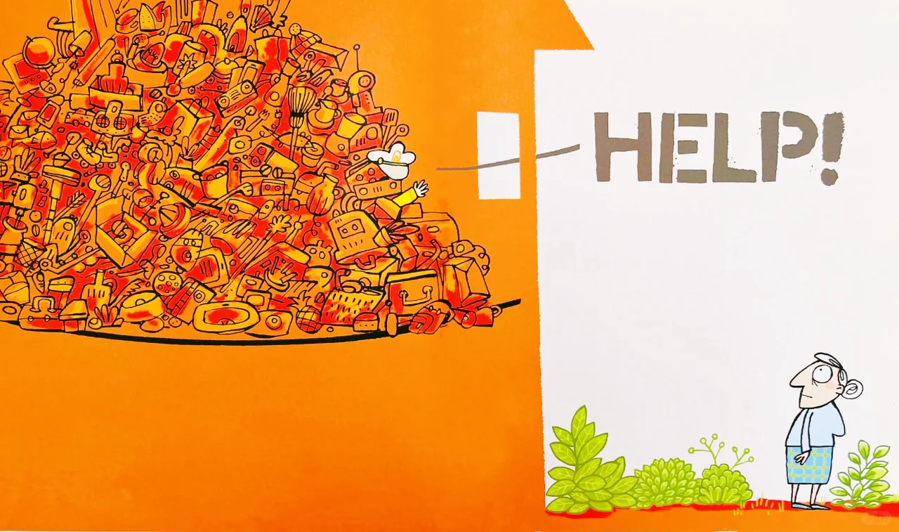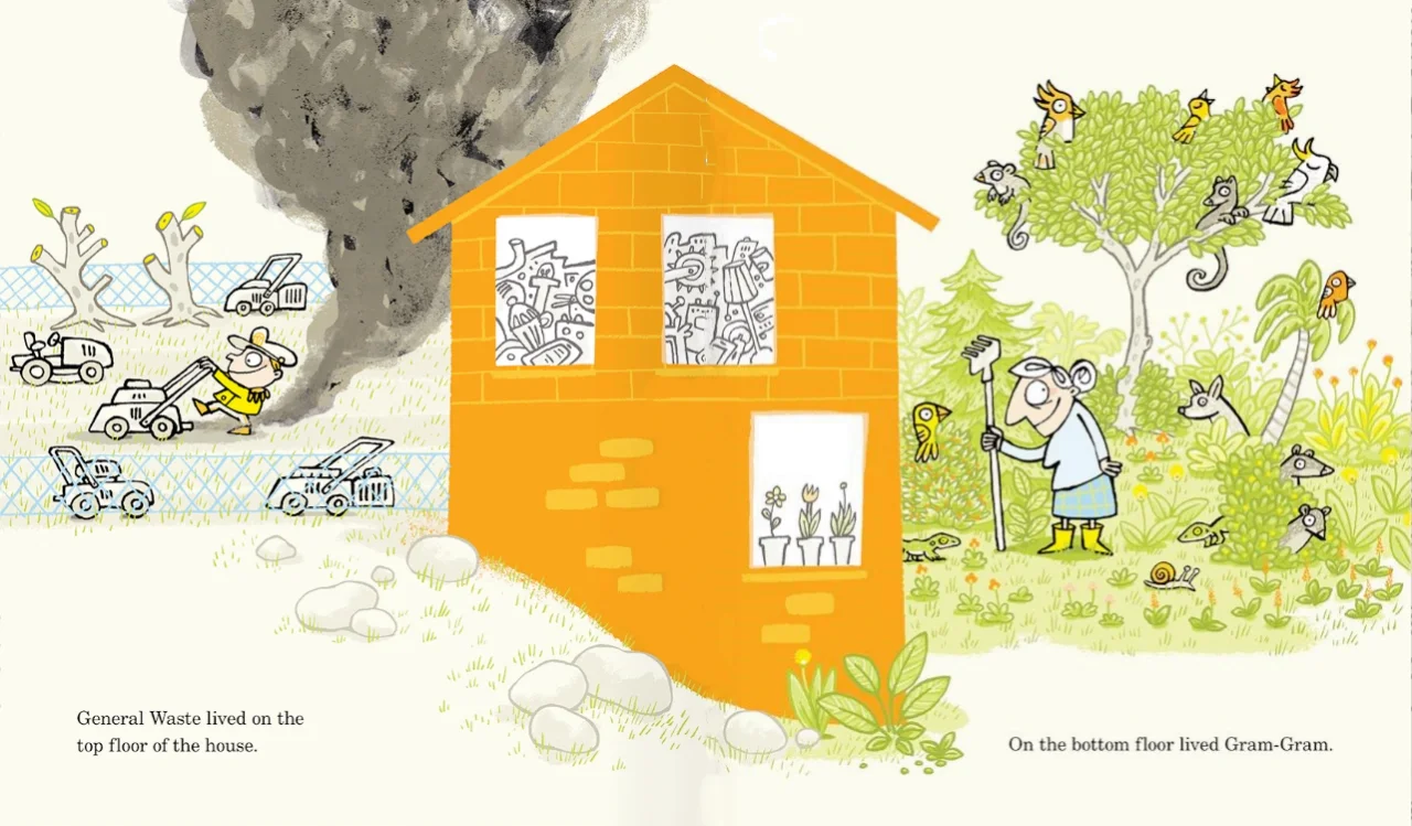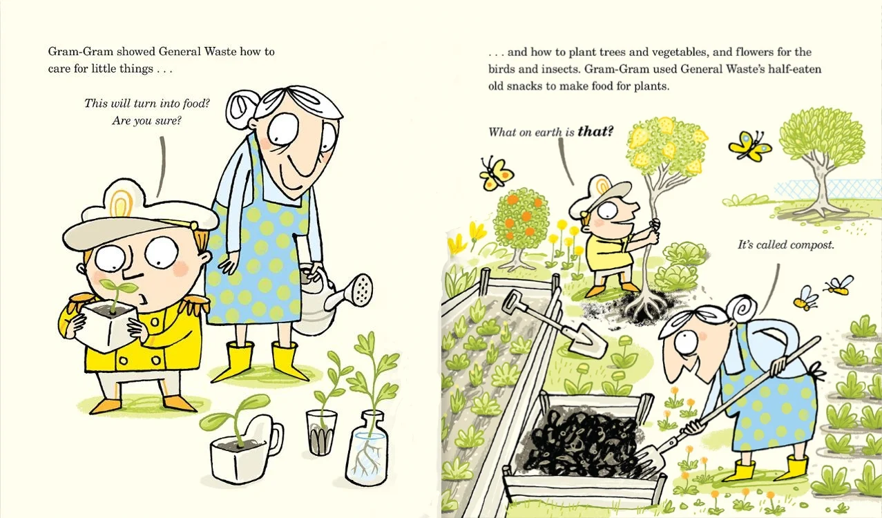 相反的,他的邻居奶奶却是一位环保、勤俭的人。奶奶懂得好好保存食物,缝补衣物,只存取自己需要的。除了对物质有「少即是好」的价值观,奶奶还懂得在自家后院耕种、堆肥、料理,日子过得舒适又惬意。原以为生活习惯大相径庭的两人不会有交集,然而就在悲剧的一天,浪费将军被自己家中的东西给淹没了!此时他需要紧急救援,而离他最近的救命恩人,正是邻居奶奶。借着这个教训,浪费将军能学会邻居奶奶的生活智慧吗?