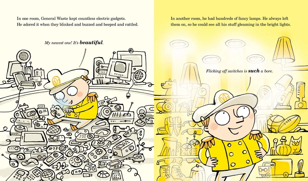 浪费将军(General Waste)是个囤物狂,他热爱购物,热爱物质所带来的新鲜感和安全感,所以浪费将军的家有超多超多东西。