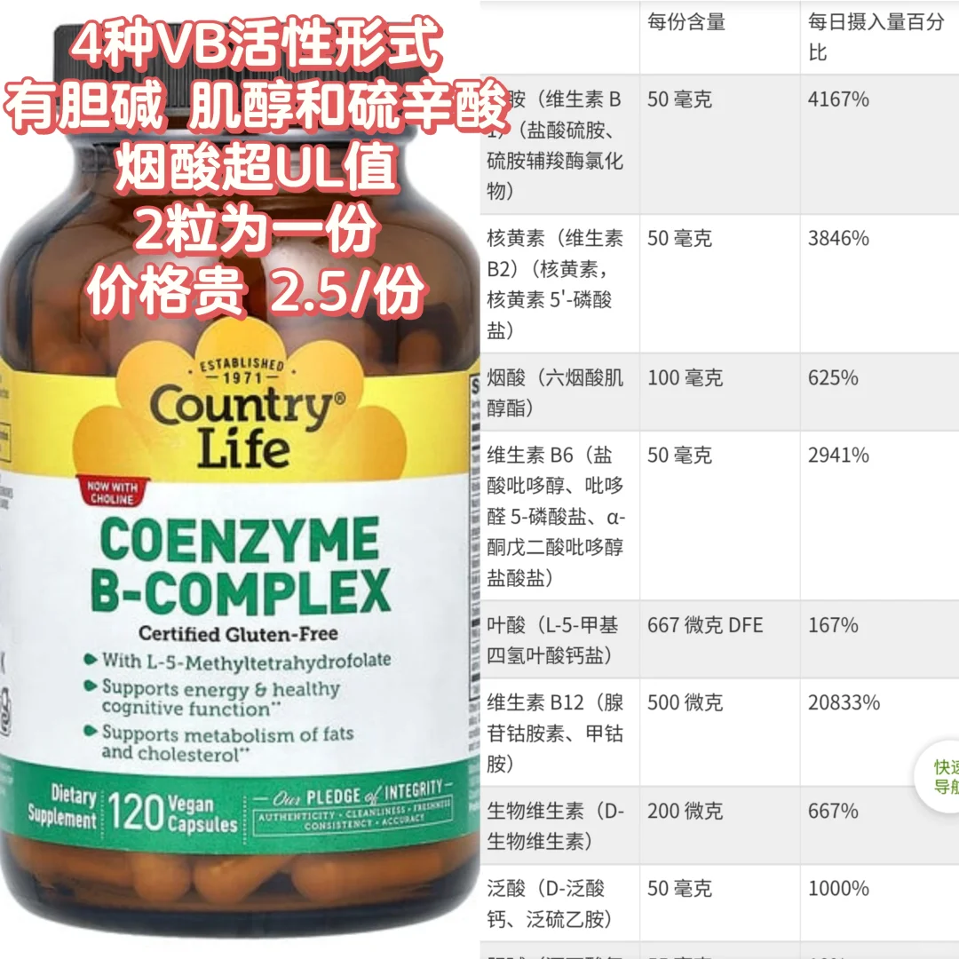 [四R]Country Life: 成分全高端款[点赞R]。4种活性,成分很全,烟酸超UL值[喝奶茶R]