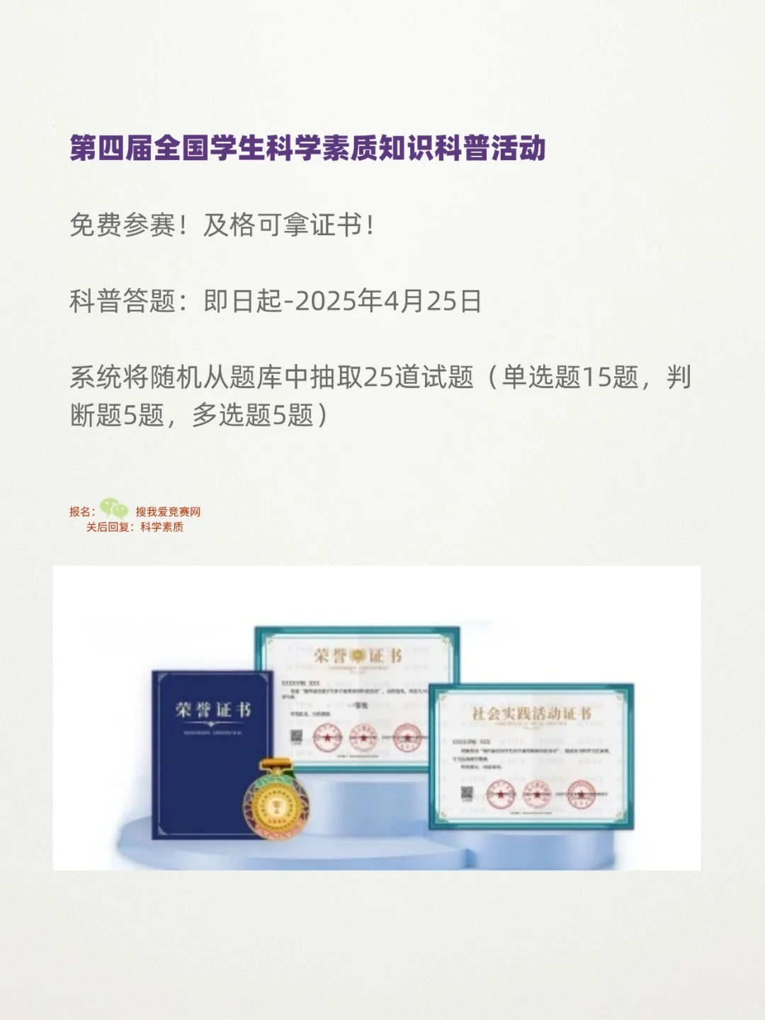 2024年全国大学生创新创业能力大赛 第二届中华优秀传统文化知识大会 2024年“文化强国杯”全国高校文学文化素养挑战赛 2024年第五届全国大学生职业发展大赛 第四届全国学生科学素质知识科普活动 2024年第二届全国大学生教育教学能力大赛