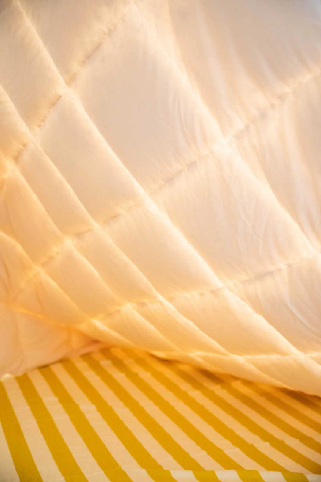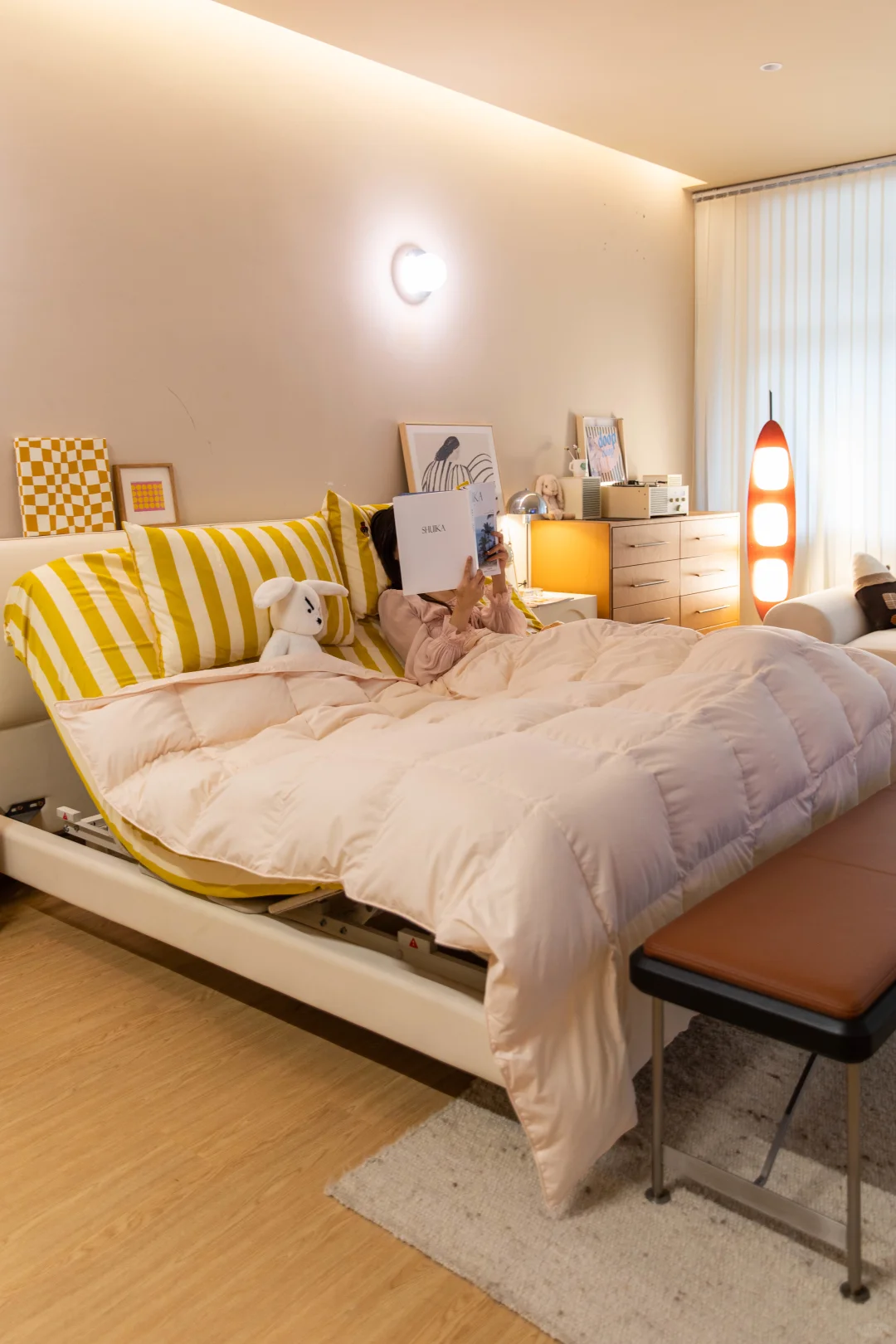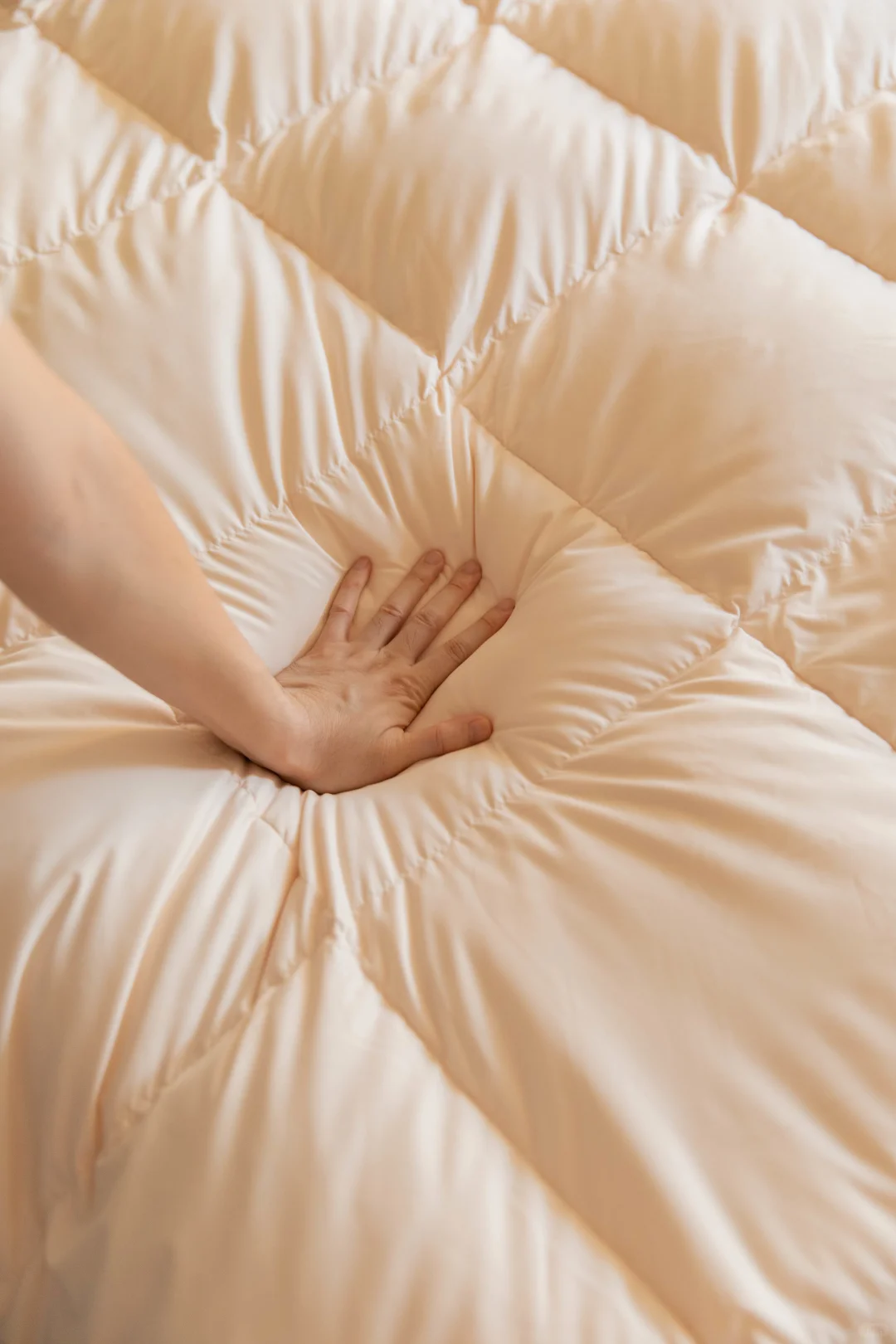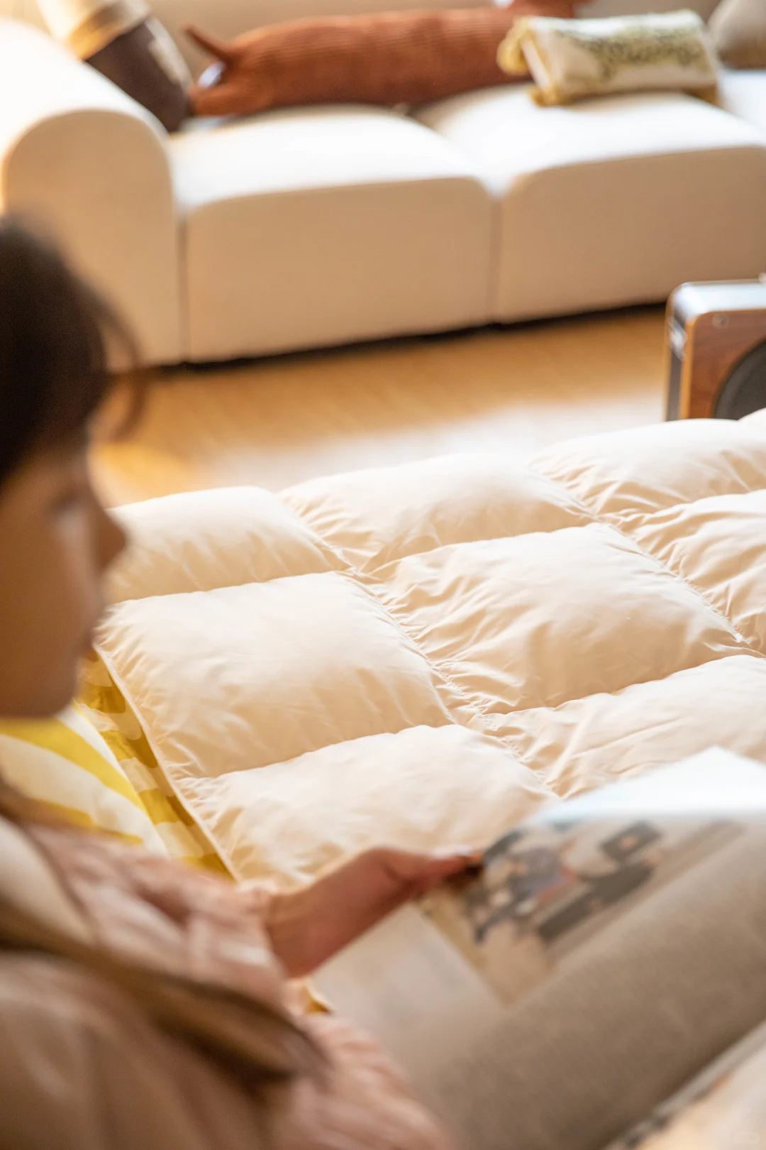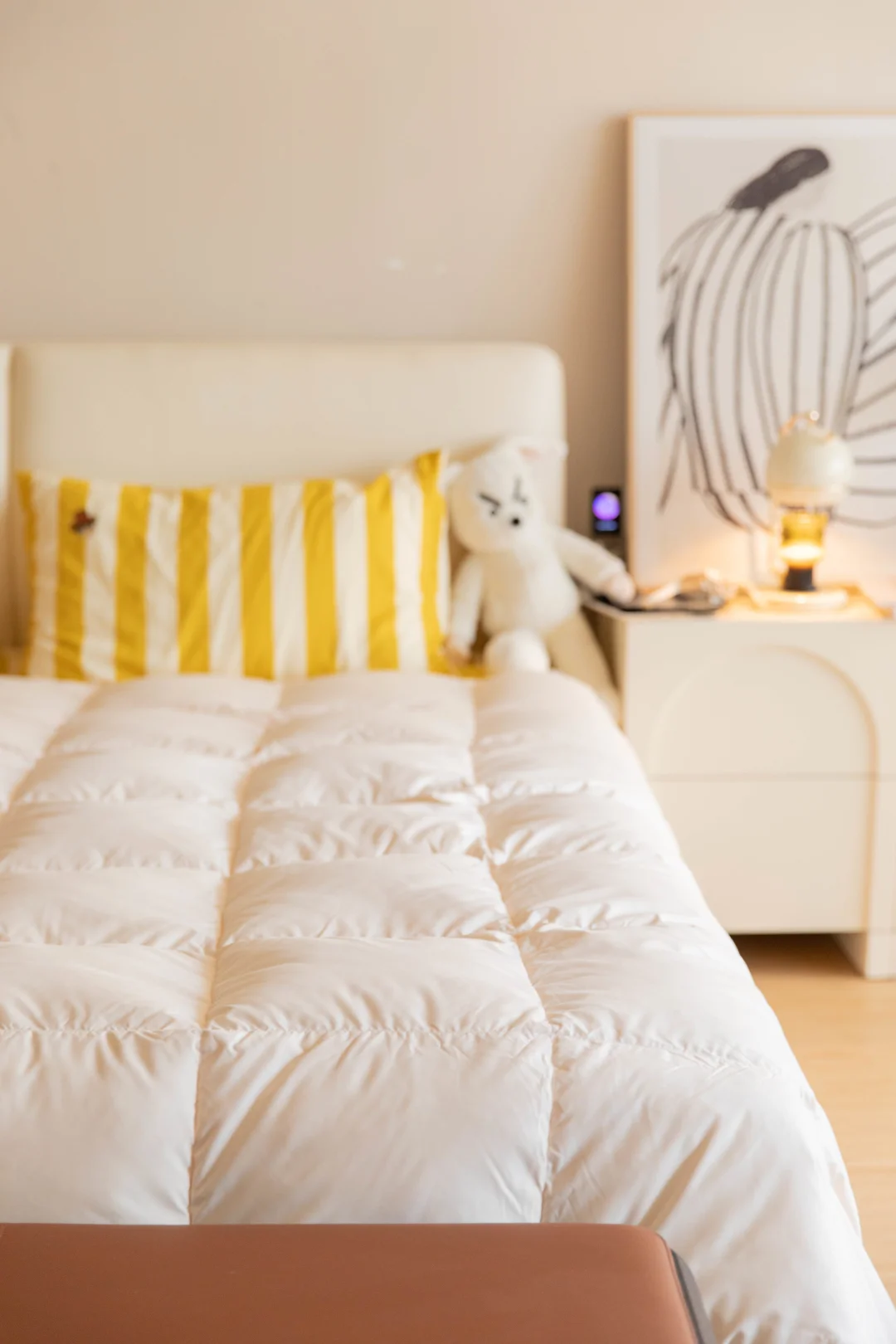 像暖亦这款就用切穿工艺来固定羽绒,每个小方格🔲都是封闭的,里面的羽绒就不大可能移位,被子就更耐用。