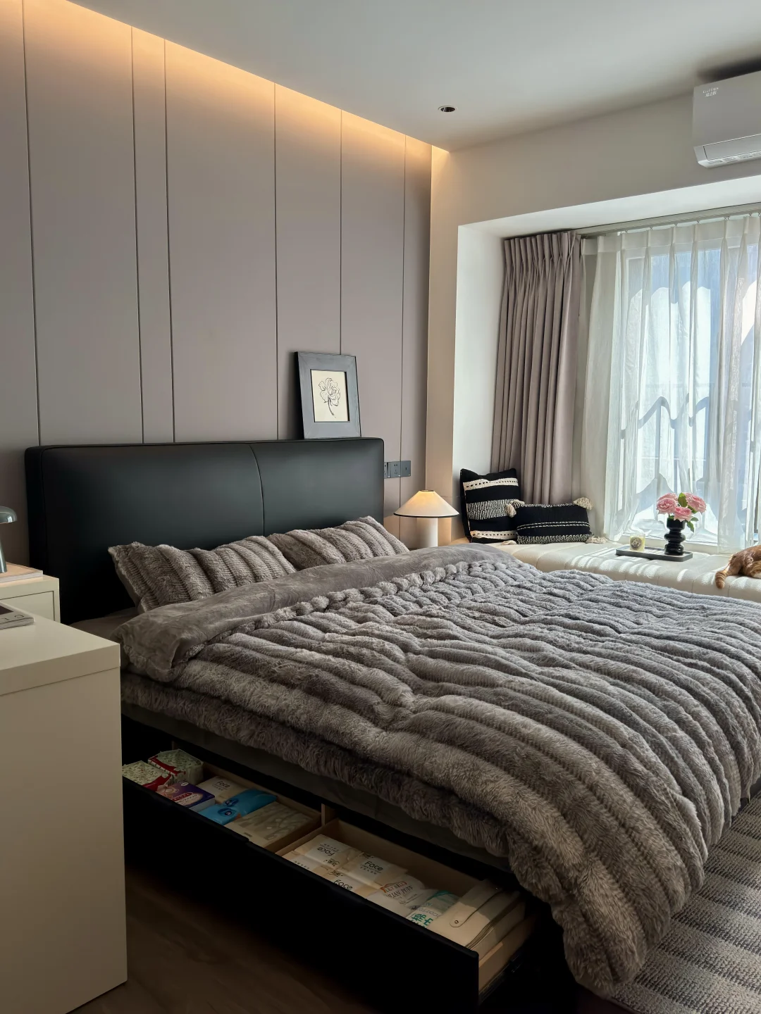 现在床底下的箱体储物空间,我用来各种大的被子和床品等等,全部可以塞进去,