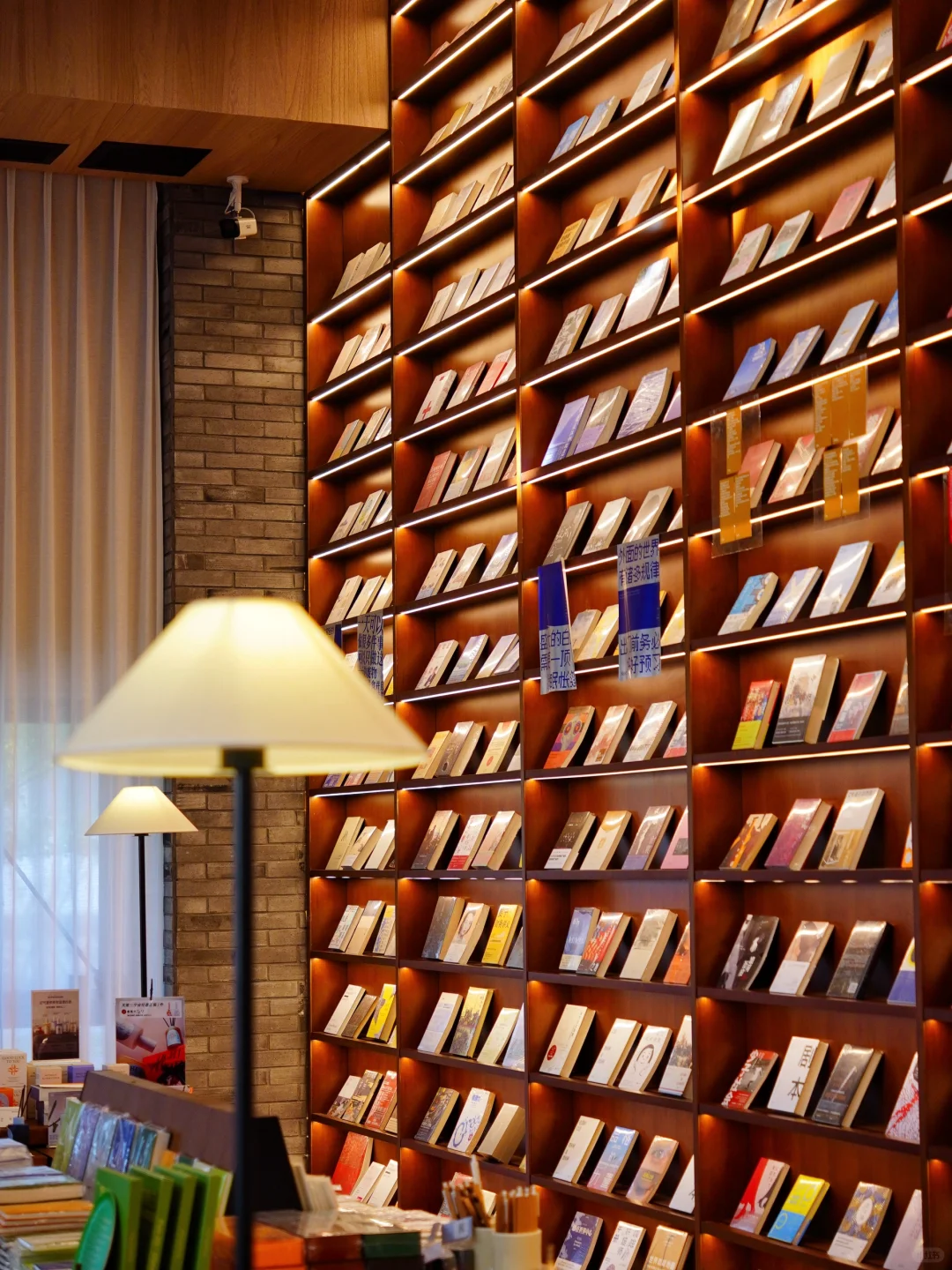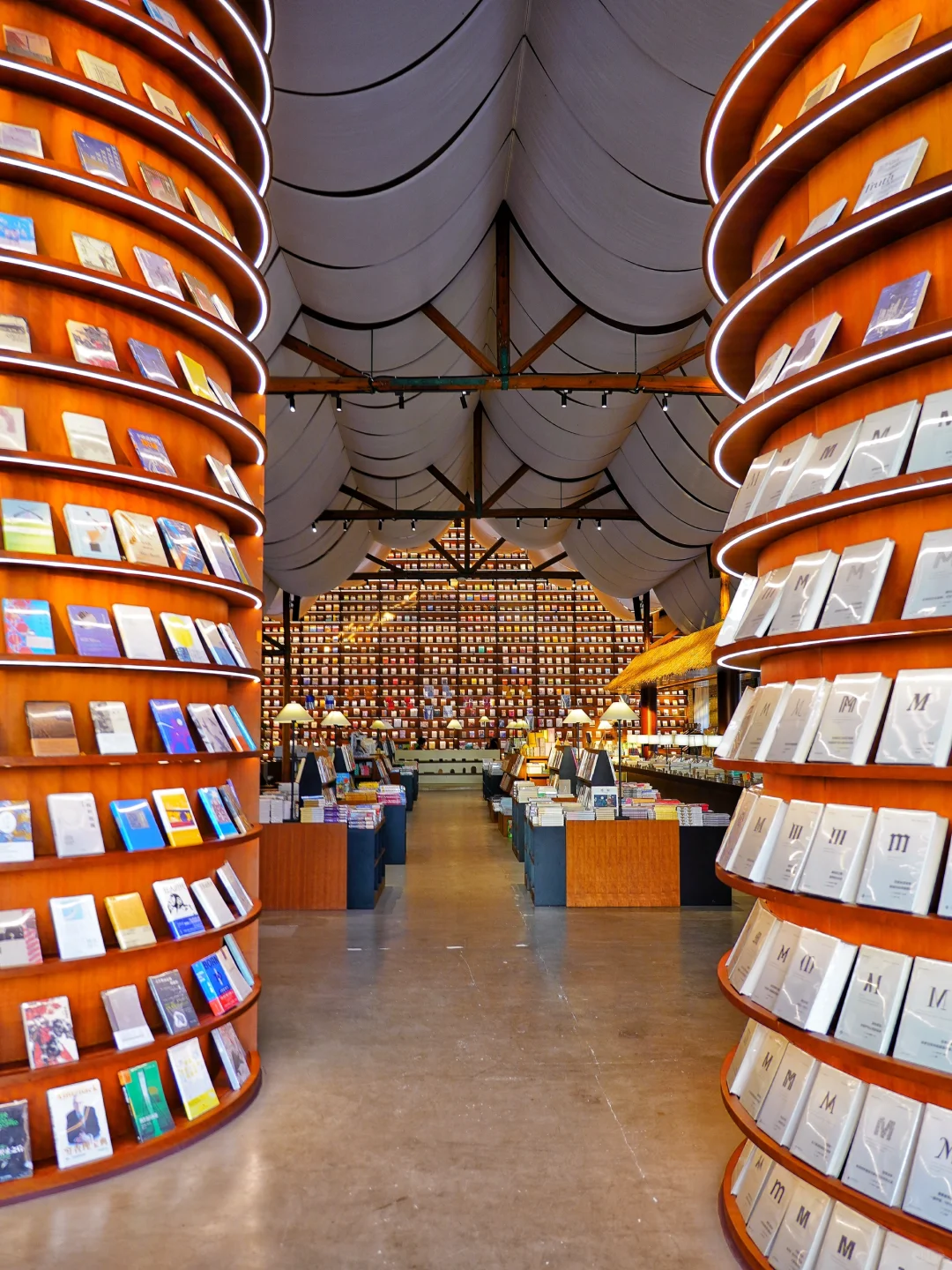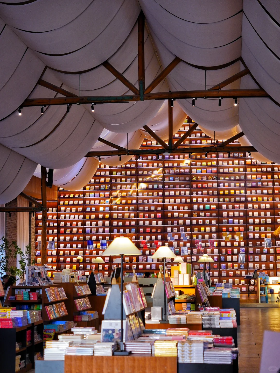 藏在谷仓中的文艺书店,一进门就是余华老师的作品书架,满墙的书籍,墨香四溢。书店构造空间感十足,木质的书架搭配柔和的灯光,让人沉静其中。