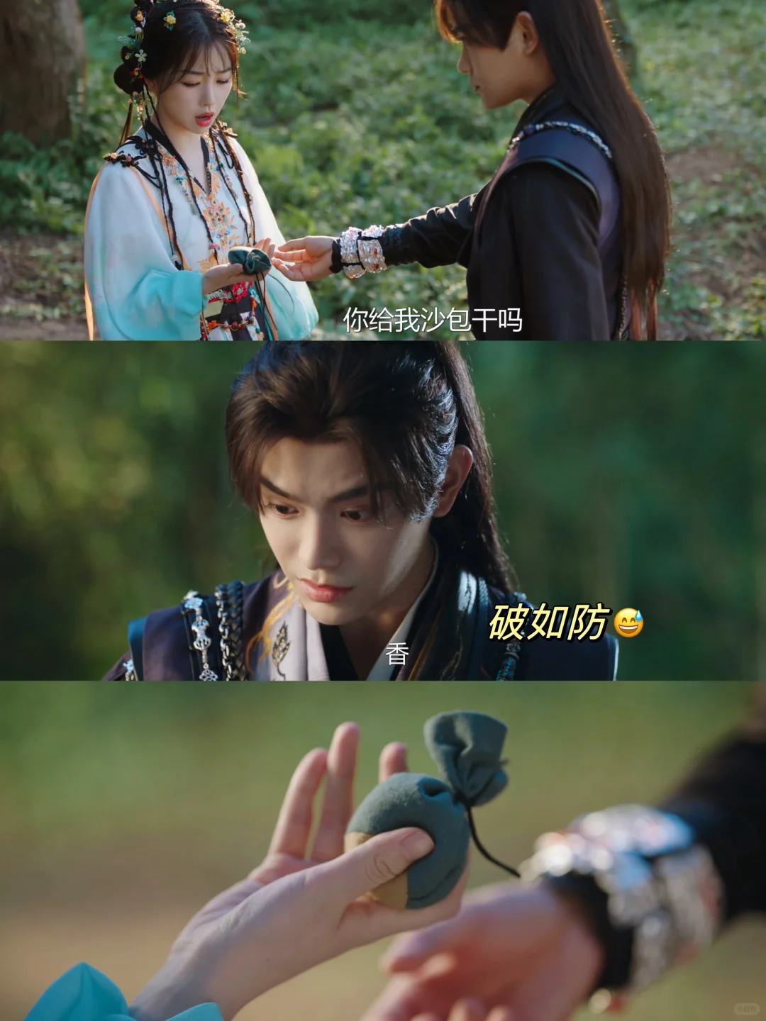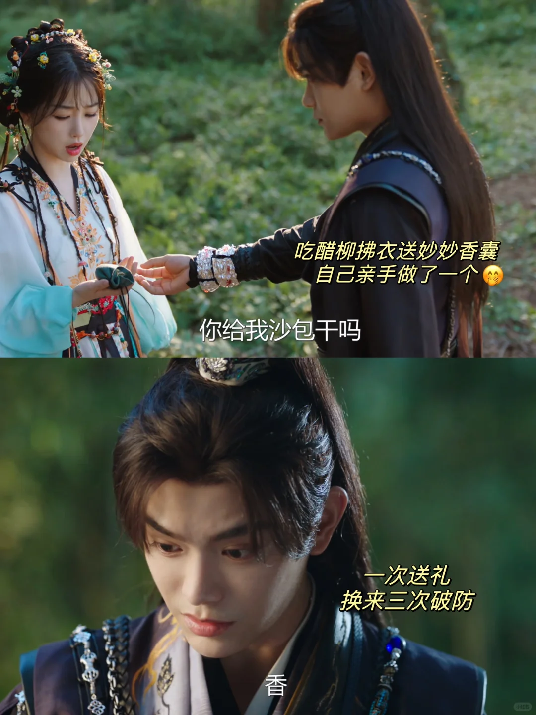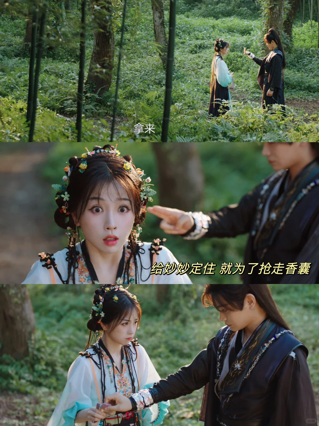 趁着妙妙单独去捡柴火的时候,偷感很重的过来,先要拿妙妙的香囊,妙妙不给。慕子期直接把妙妙定住,香囊直接飞上天🔥了😅
