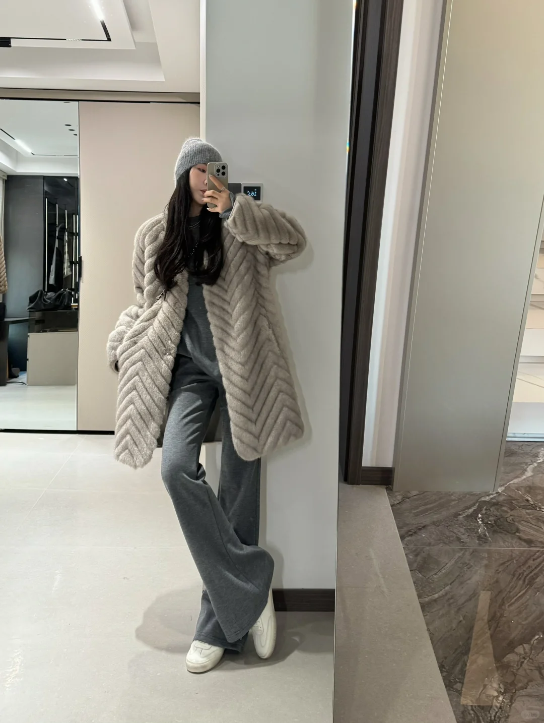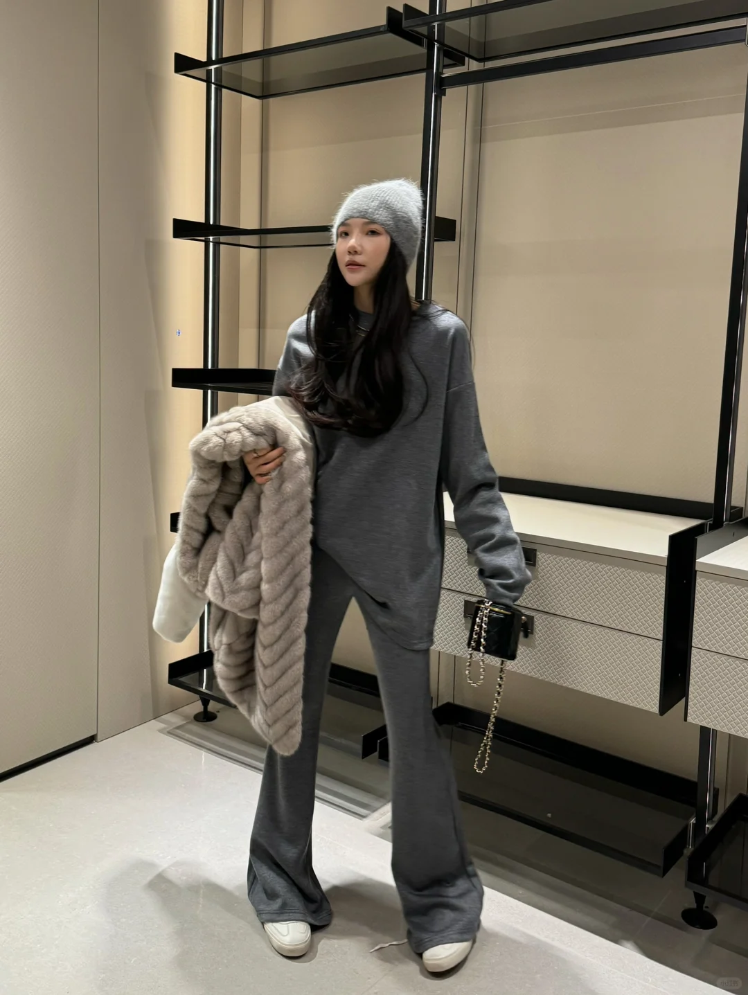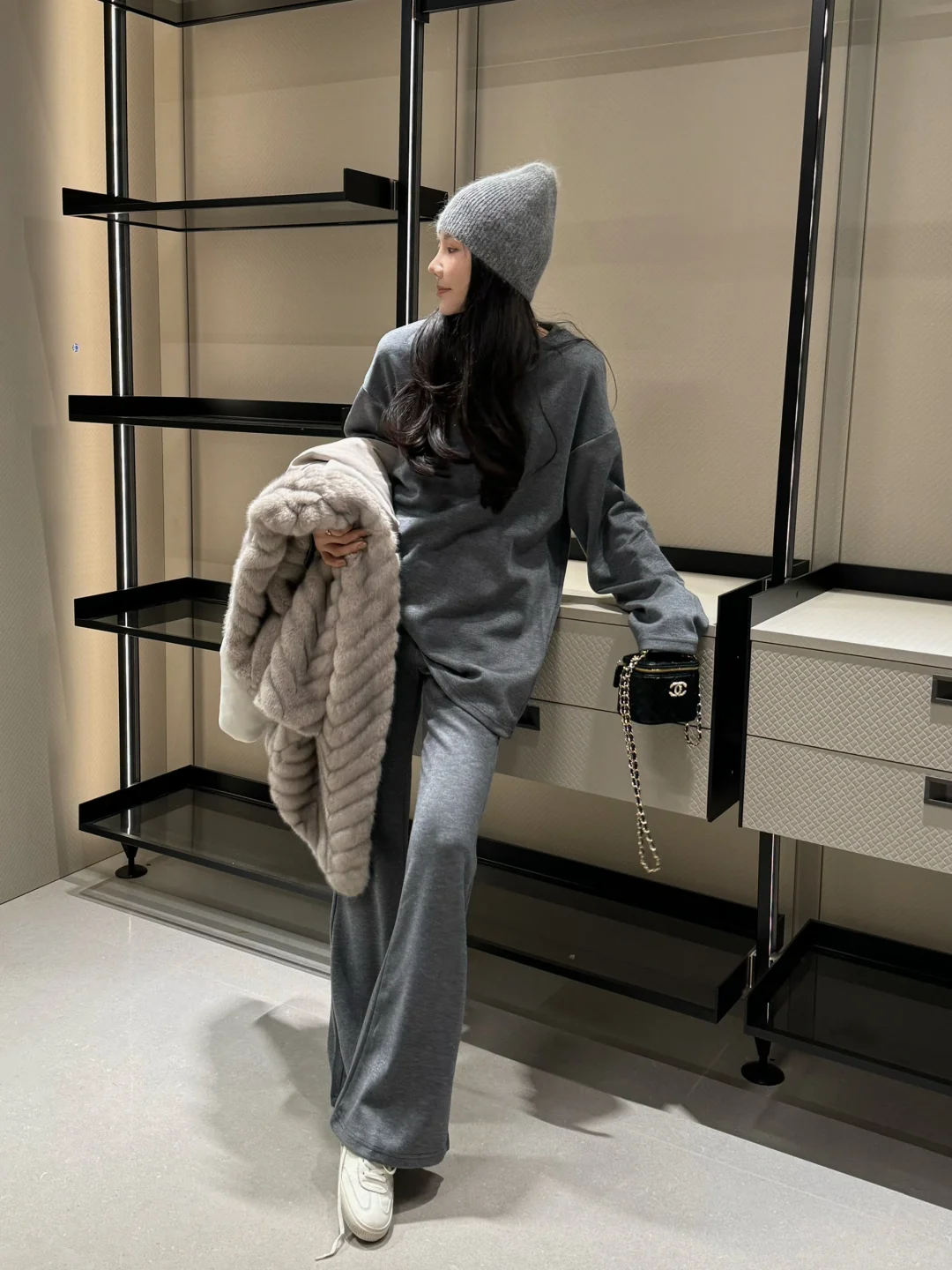 这个颜色海鸥灰 也太高级干净了 毛质好好 摸起来手感绝啦 搭配随意百搭的套装 贵气又休闲的感觉太特别了