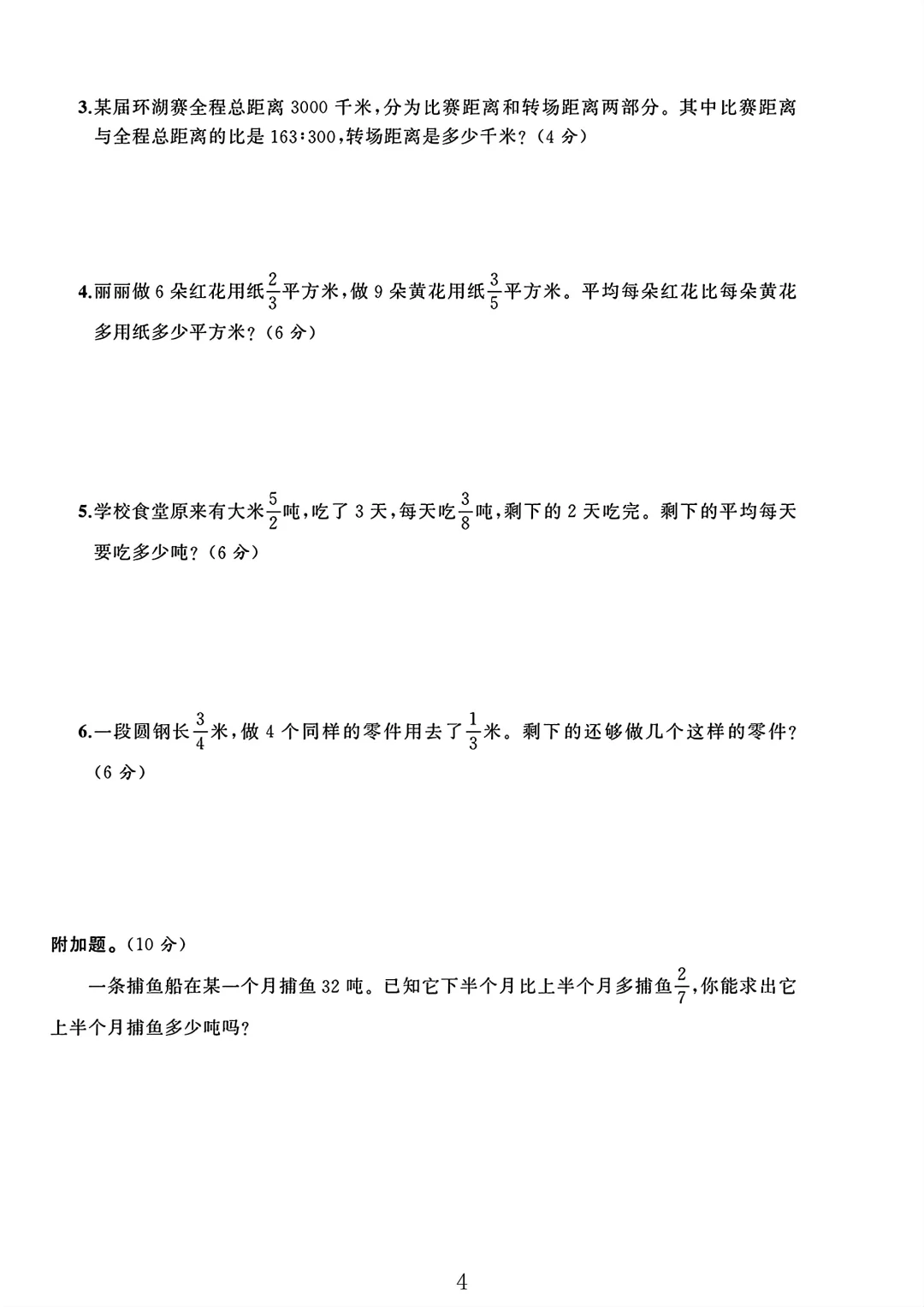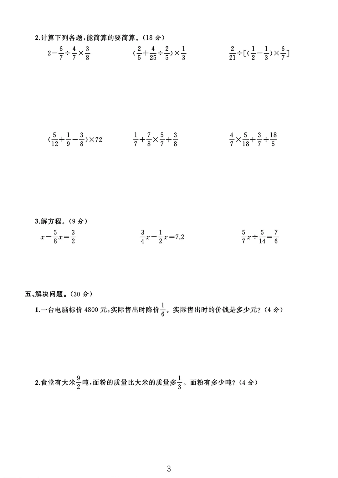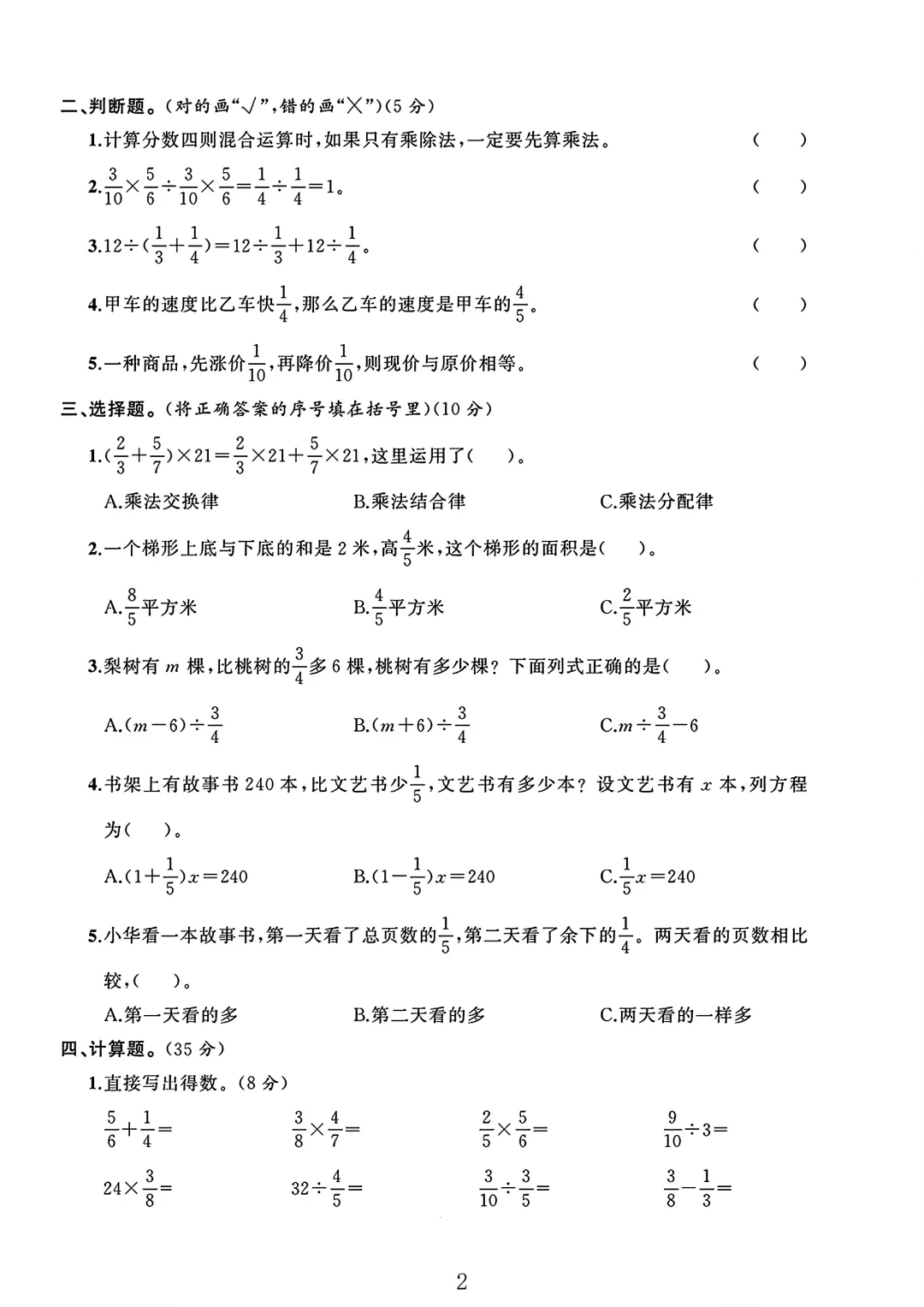 苏教版 六年级上册数学 单元测试 第五单元测试卷 电子版可打印 试卷