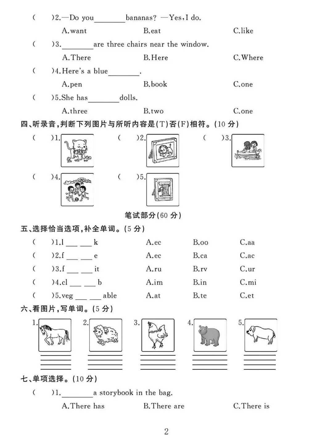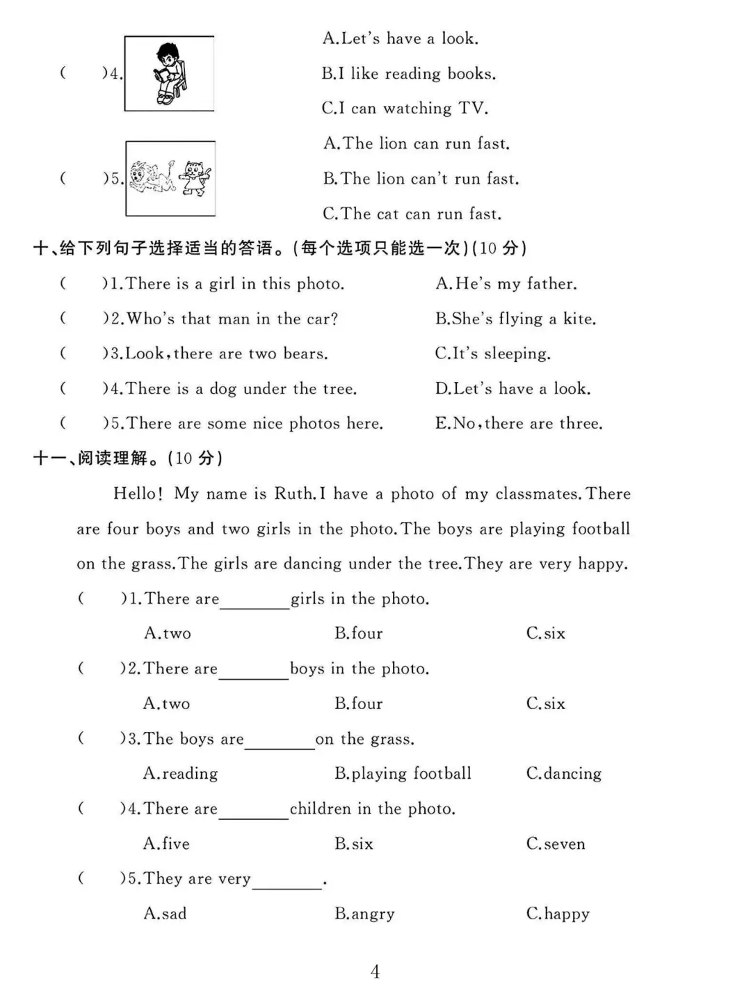 外研版 四年级上册英语 第七单元测试卷 单元测试 电子版可打印 试卷