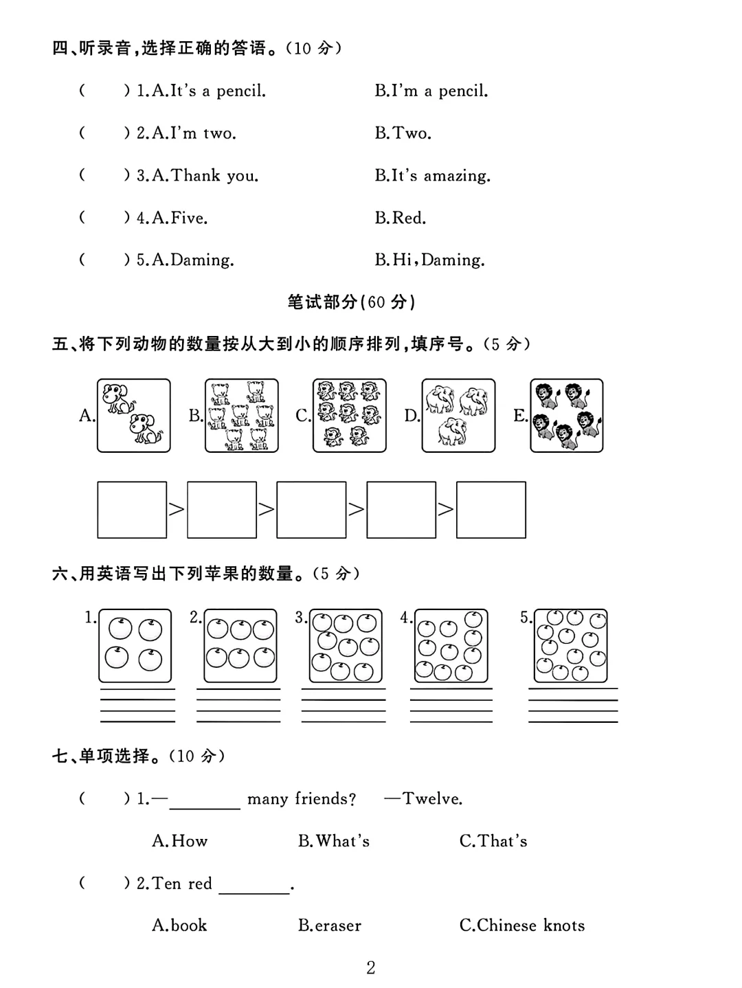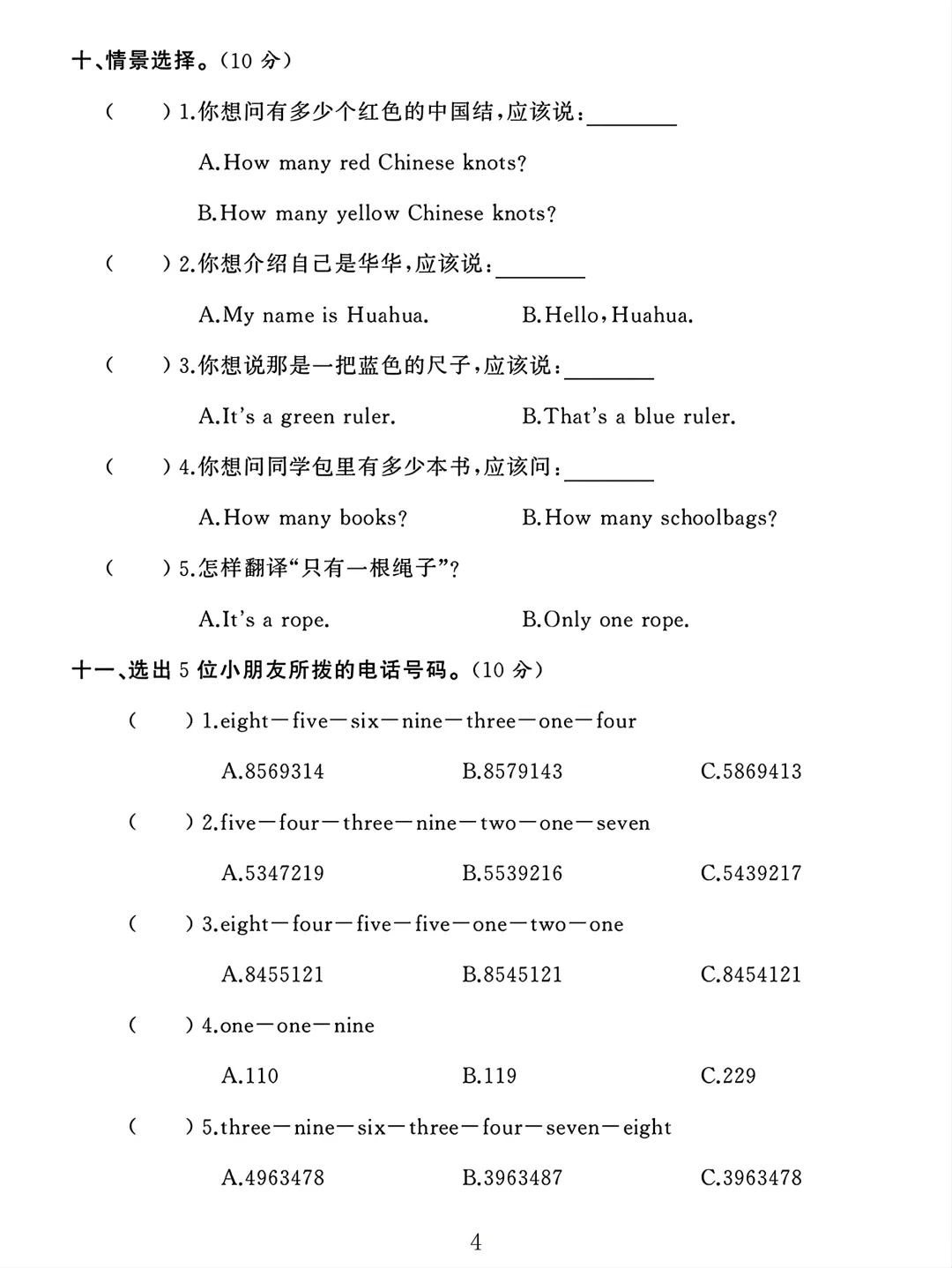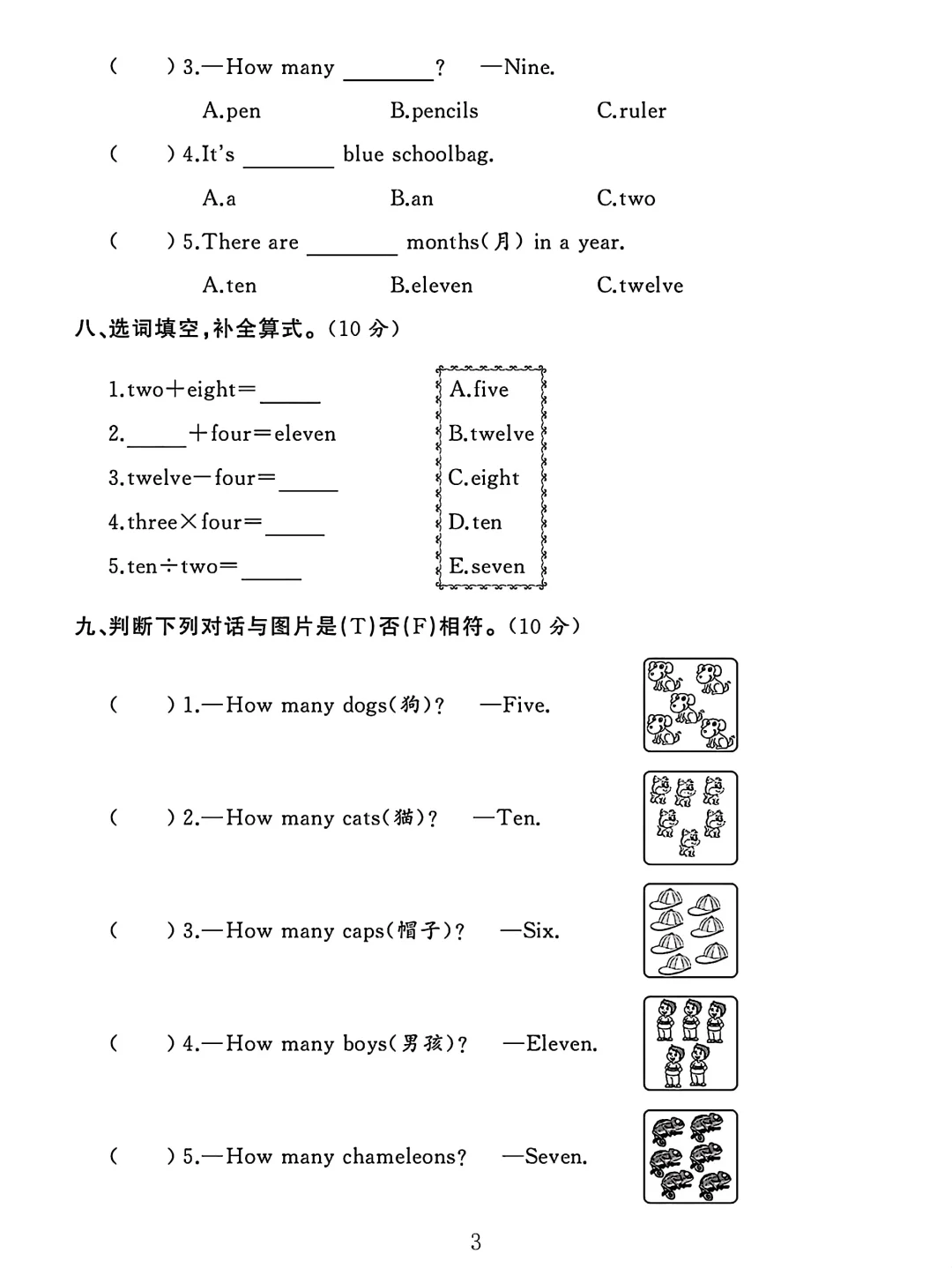外研版小学英语 三年级上册英语 单元测试 第四单元测试卷 电子版可打印 试卷