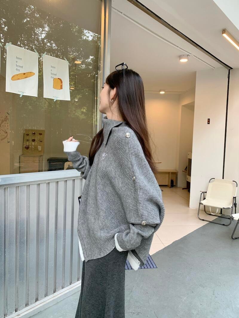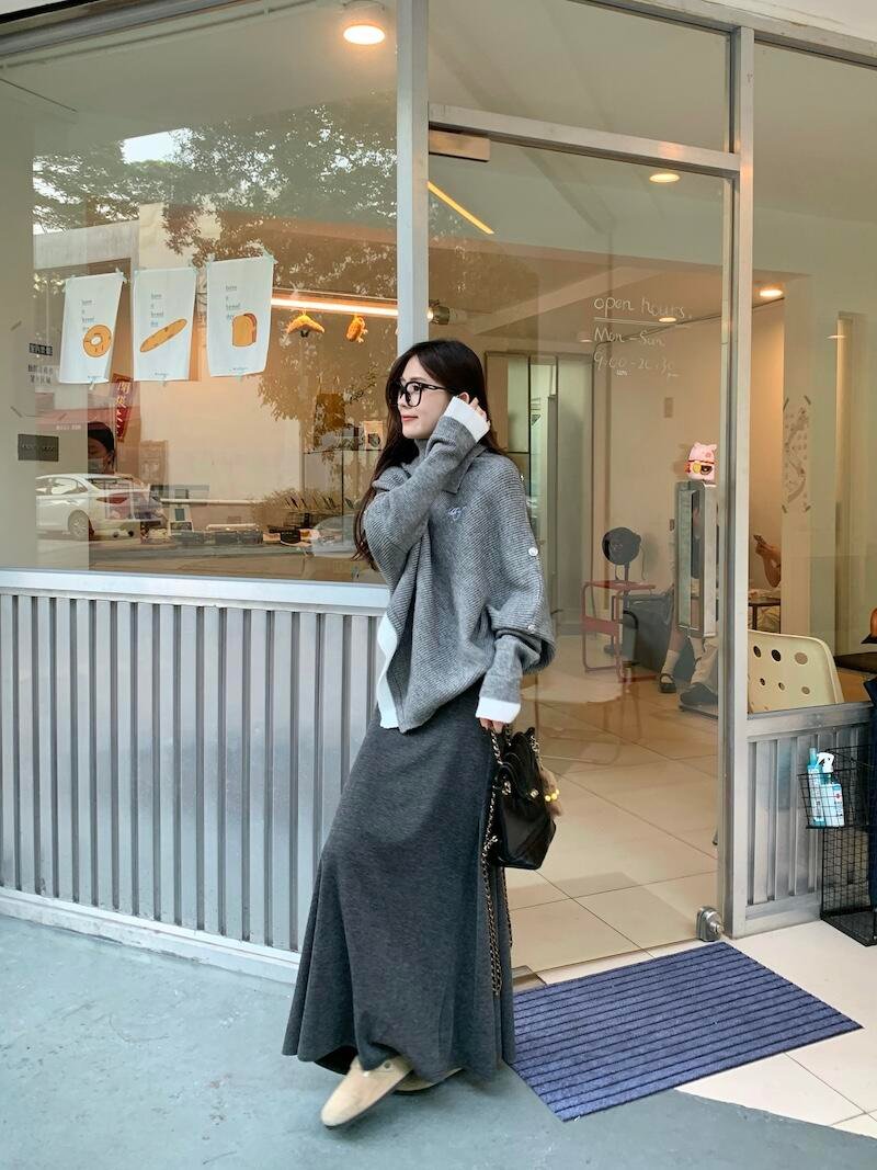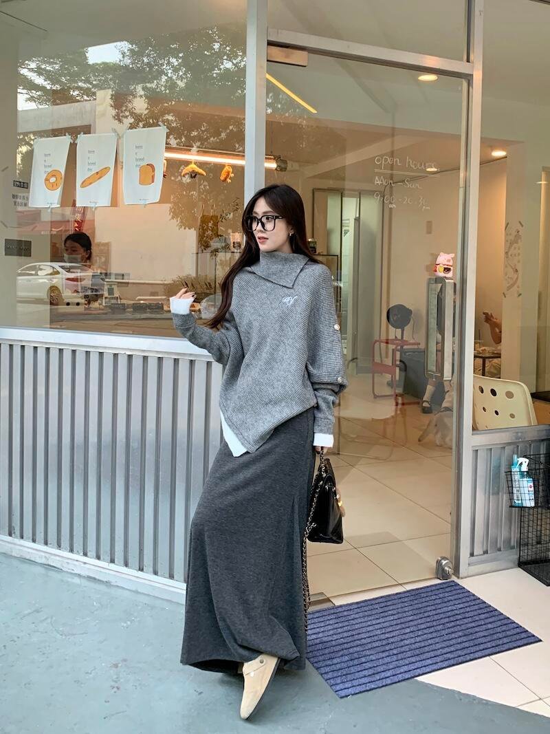 不规则斗篷毛衣➕半身裙❗️松弛慵懒感拉满