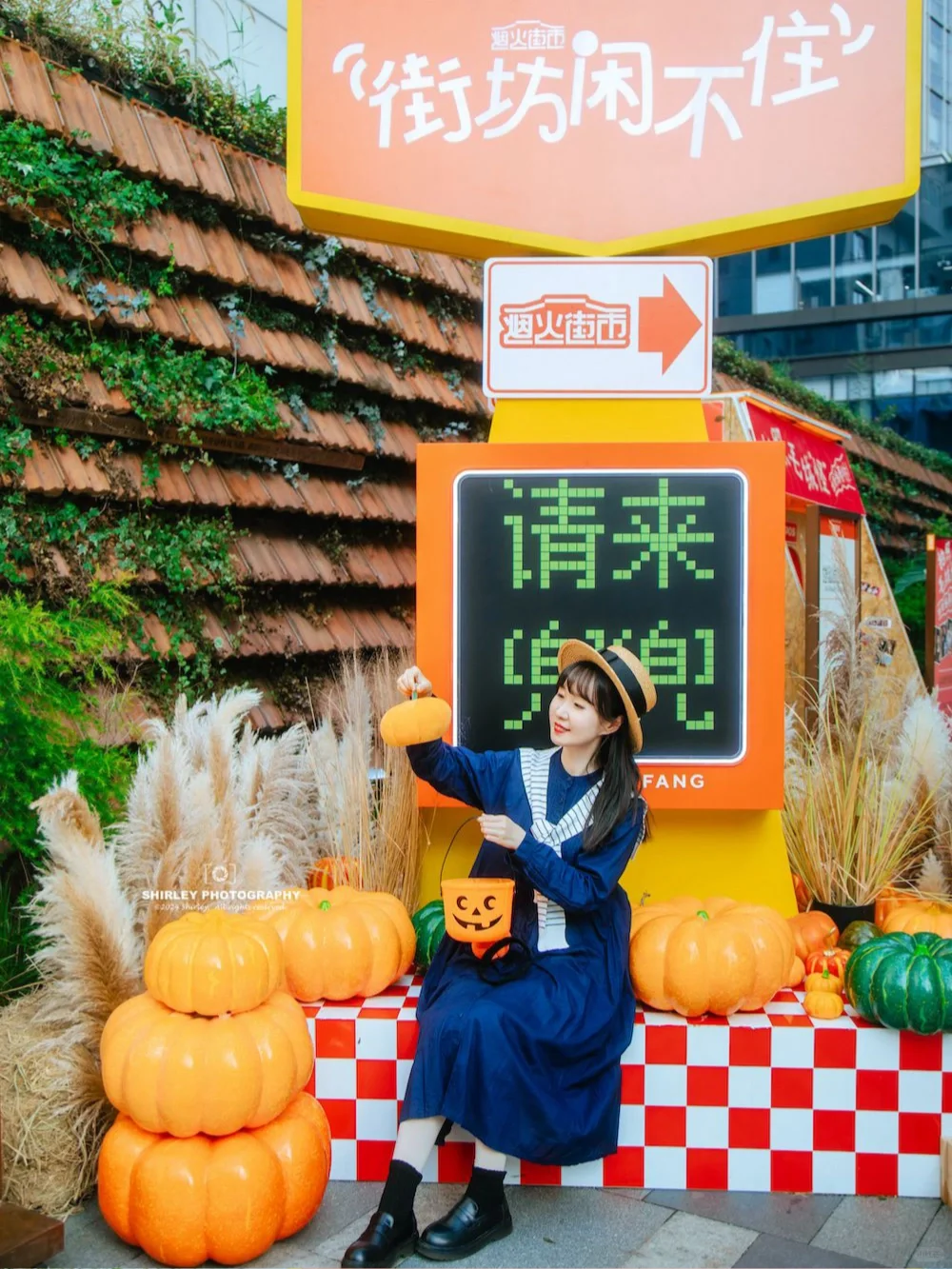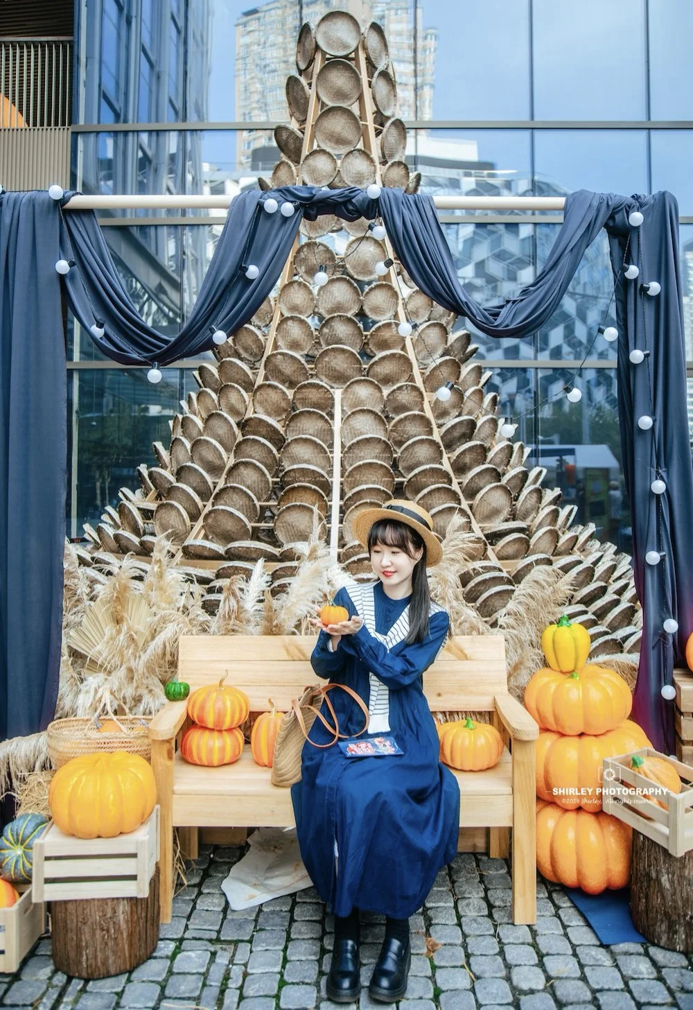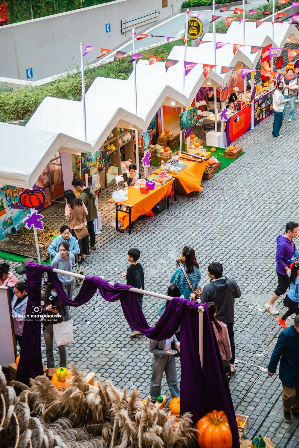 市集里的南瓜投投乐活动,挑战成功可以获得一只很有节日气氛的南瓜发箍,适合带着拍照。