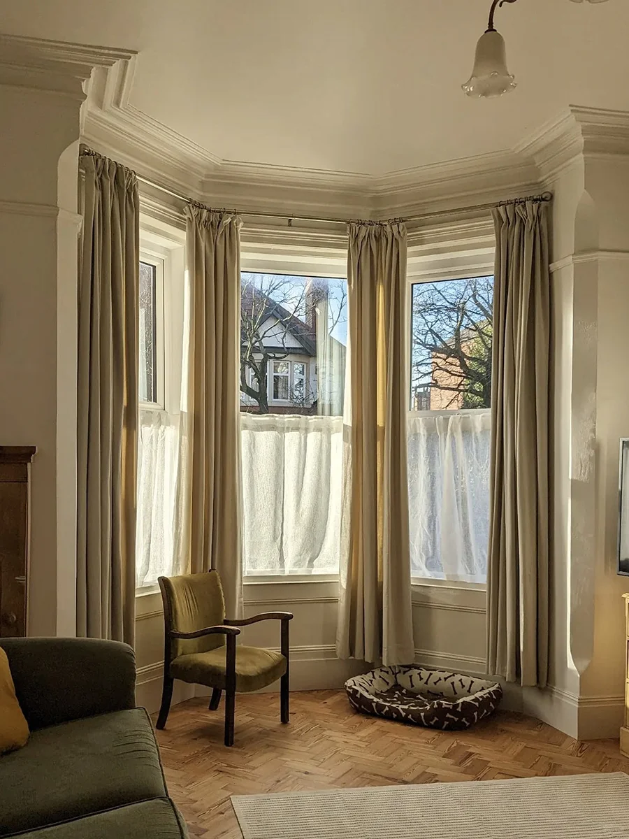 亚麻半帘的诀窍在于 “ 轻 ” , 相较于传统布帘的杆轨搭配, 半帘更适合纤细的杆身, 材质黄铜为最佳。 款式上, 常见的是穿杆款, 和手工吊带款。 本原亚麻布艺 纯亚麻窗帘