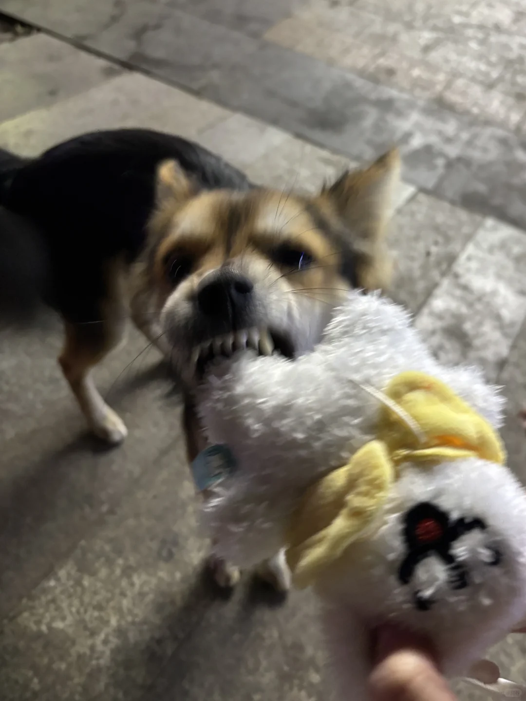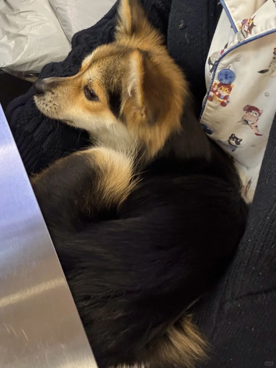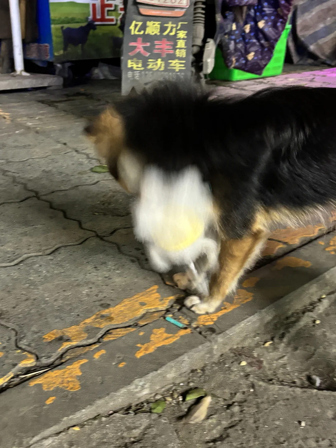 等久了他试图跳到凳子上看我们吃什么,结果失败了一下摔在了地上,饭店的服务员老板娘看到这一幕哈哈大笑。饭店里的一只柯基靠近他一直舔他想和他玩,他只是侧过头,他也没有咬人家。