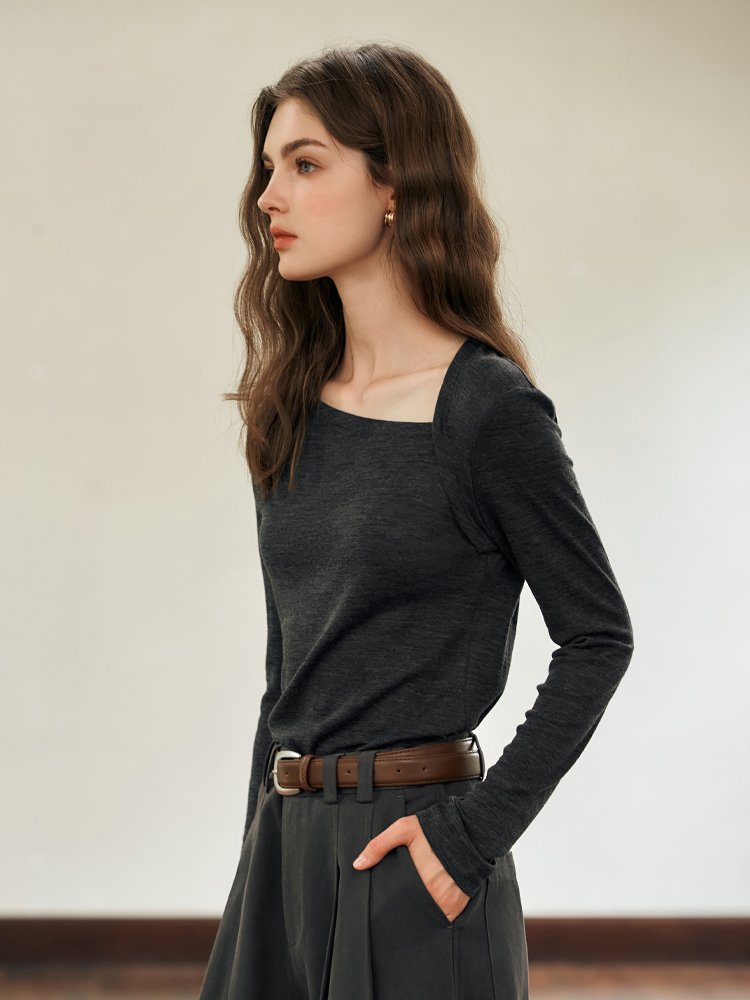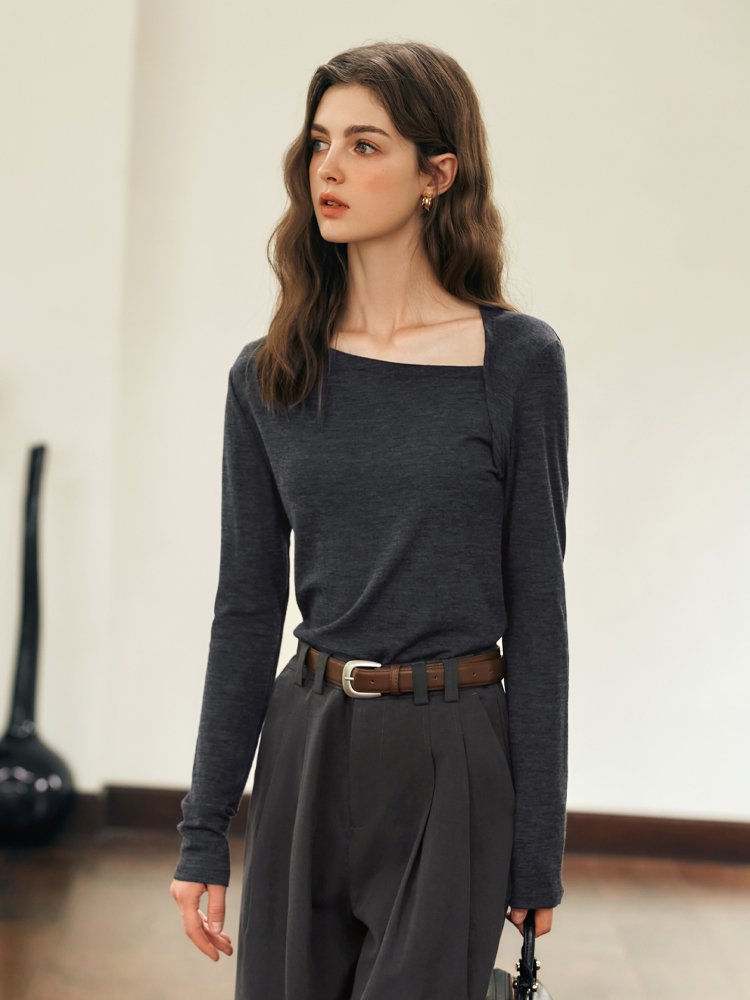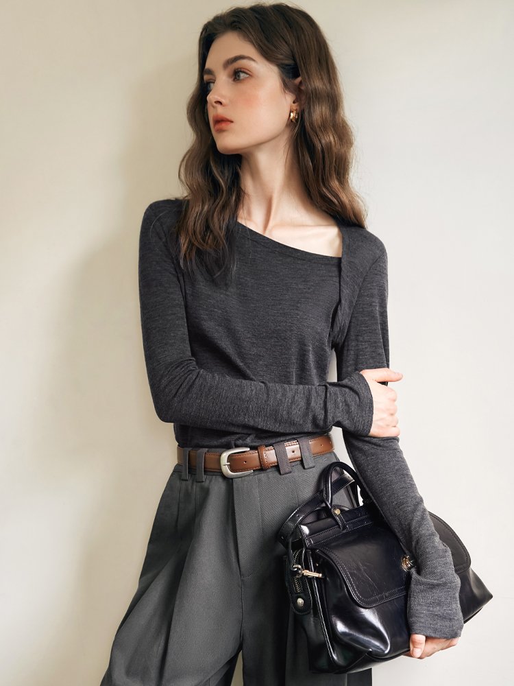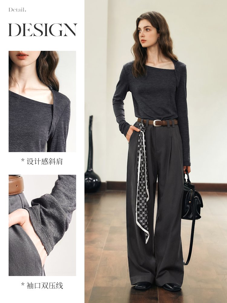 亲柔设计感斜肩显瘦T恤