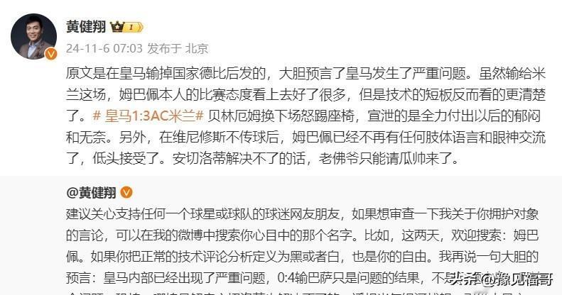 欧冠惊魂!皇马主场3-1惨败,安切洛蒂再遭质疑 据统计,皇马本赛季欧冠首次主场3球落败,积分榜直接跌至倒数第二的第17位!本场比赛AC米兰仅排名意甲第7,却将豪门皇马打得丢盔弃甲。 姆巴佩和维尼修斯屡屡错失良机,球队配合混乱,场上火药味十足。贝林厄姆愤怒踢椅子,显示更衣室已陷入巨大内耗。莫拉塔和拉因德斯进球无法挽回颓势,防线漏洞百出,安切洛蒂的战术打法彻底失灵。 这场比赛被媒体形容为欧冠惊魂夜,不仅暴露皇马战术老化,更让球迷对球队前景产生极大担忧。外界盛传可能引进瓜迪奥拉接管球队,重建皇马荣光。目前球队已陷入严重的信任危机,能否及时调整成为悬念。 #欧冠 #皇马 #足球 #体育