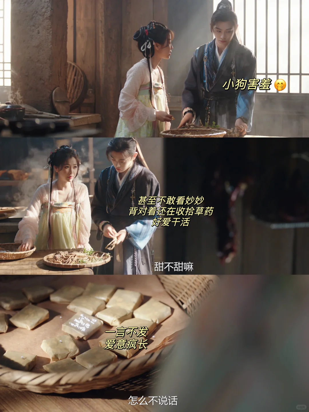 转过身去背对着妙妙不敢看她,继续整理草药,妙妙追问他甜不甜他也一言不发,但爱意疯长…表面傲娇实则乖乖被钓😌在妙妙身边永远不会有被人忽视的感觉,永远是被人认真对待的感觉,真好🥺
