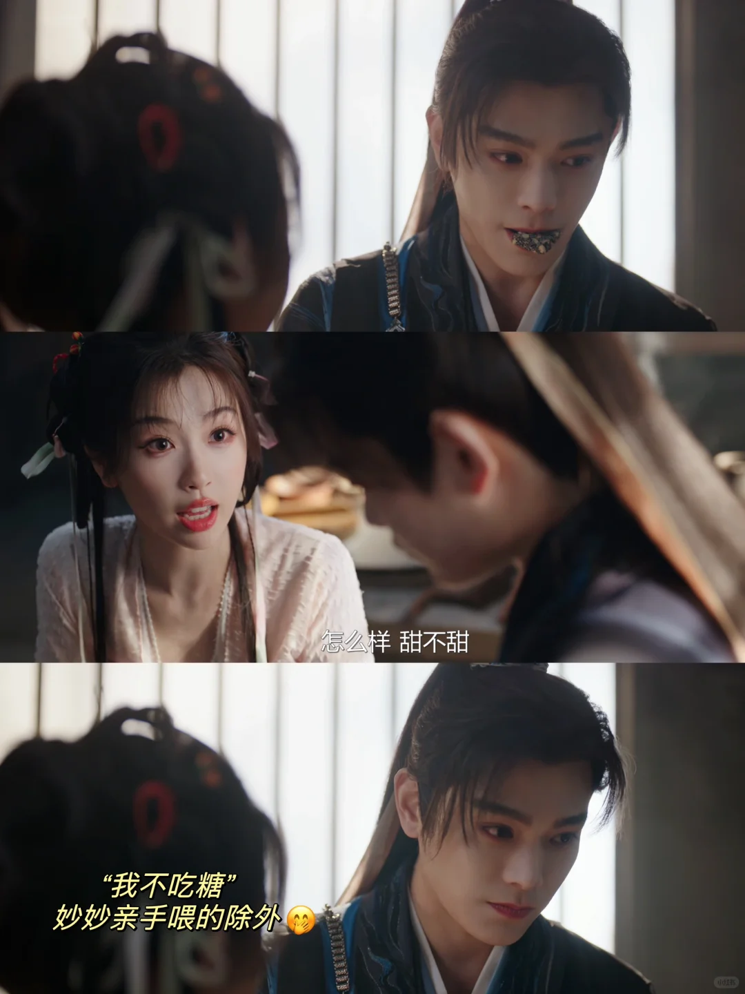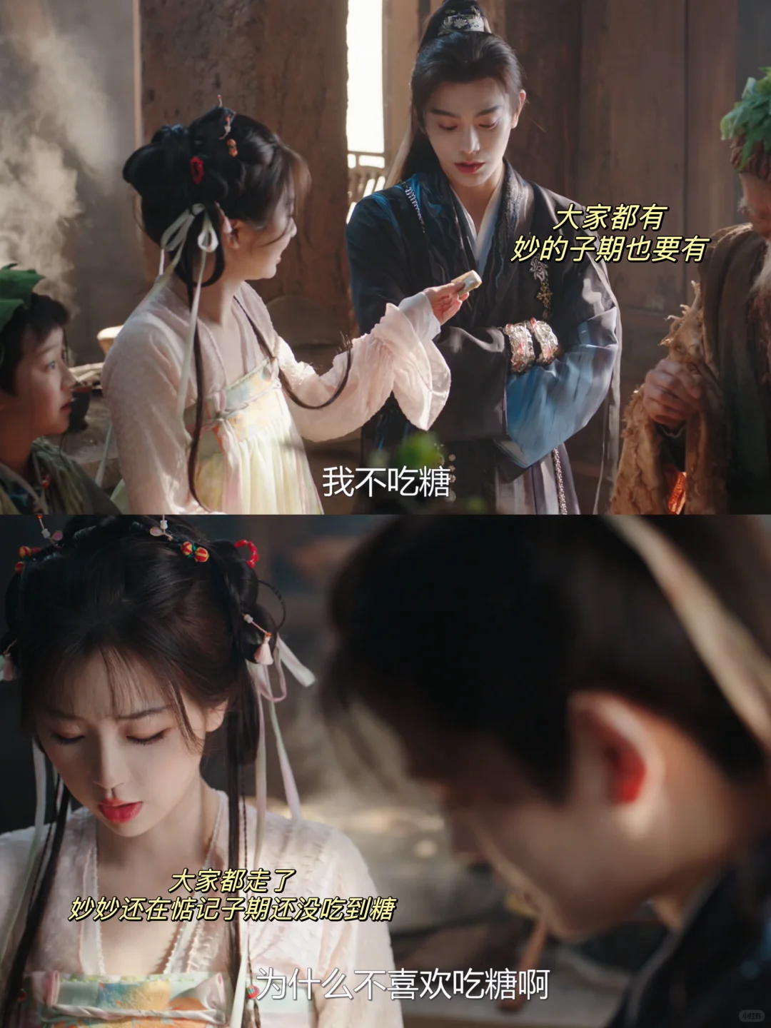 等大家都走了,妙妙仍然记得子期还没吃到糖,问他为什么不喜欢吃糖,还不等他回答就塞给他一块☺️☺️☺️