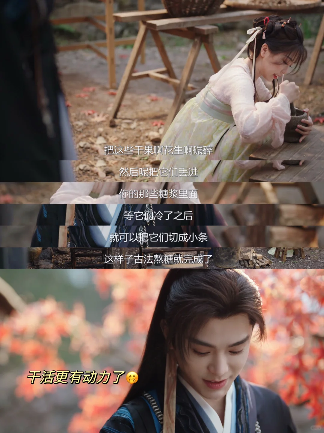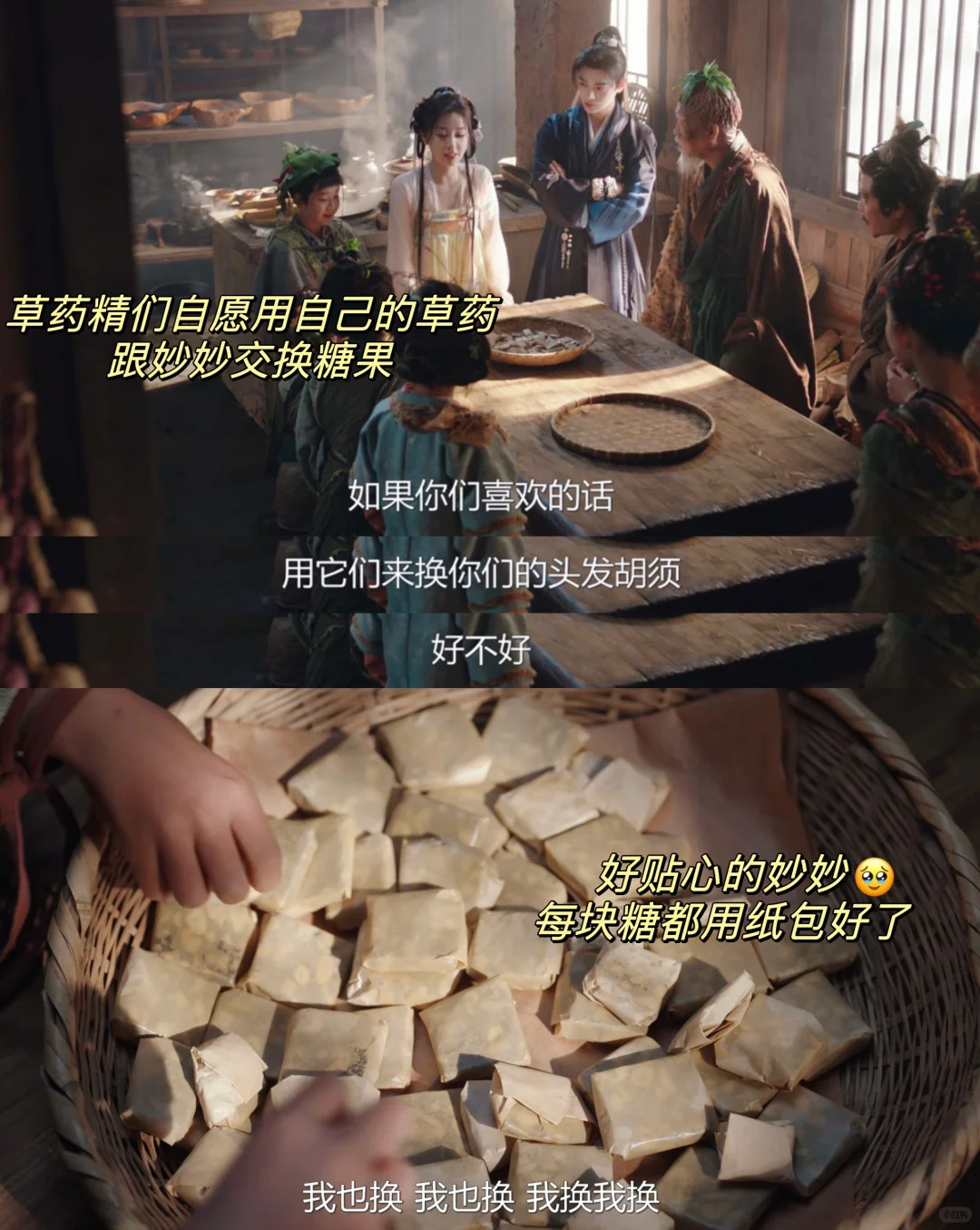 妙妙制止了子期,让他跟自己一块熬糖,她要亲手做古法熬糖跟草药精们换取药材。子期不解,觉得他们只是妖,但妙妙觉得妖跟人没有不同。子期就像小狗被摸了头,又高兴了,熬糖也不喊累了🤭