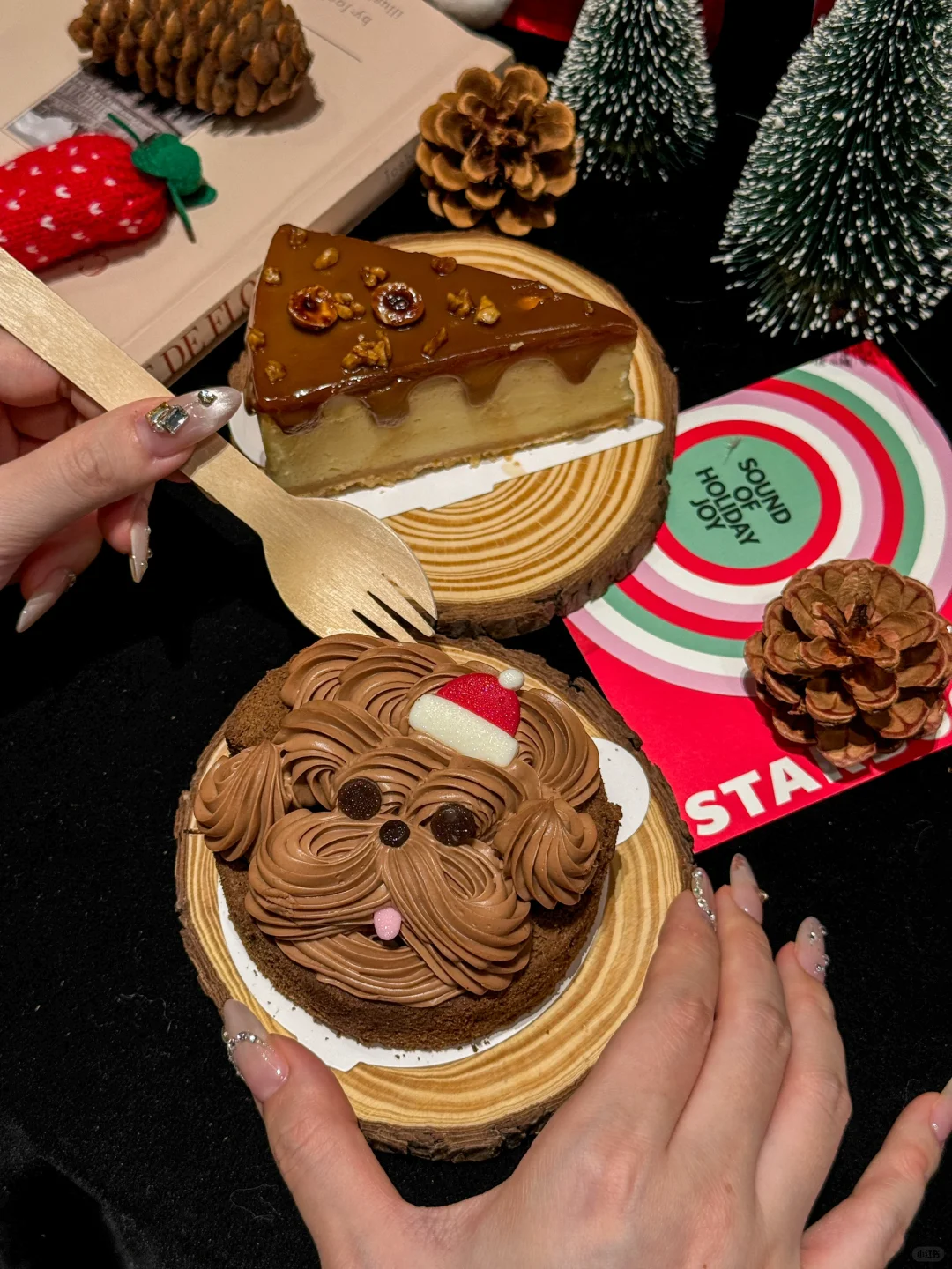 这次还有圣诞限定甜品🍮,太妃榛果芝士蛋糕和巧克力布蕾蛋糕🍰泰迪犬造型的巧克力布蕾真的又可爱又好吃!