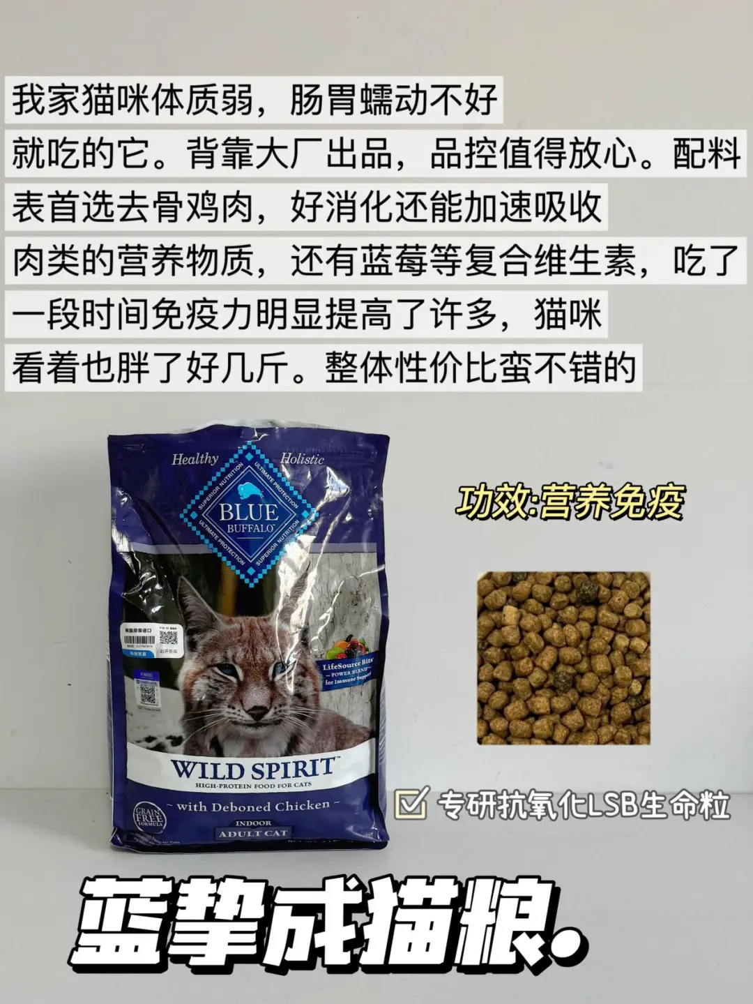 配料表首选去骨鸡肉,好消化还能加速吸收肉类的营养物质,还有蓝莓等复合维生素,吃了一段时间免疫力明显提高了许多,猫咪看着也胖了好几斤。整体性价比蛮不错的