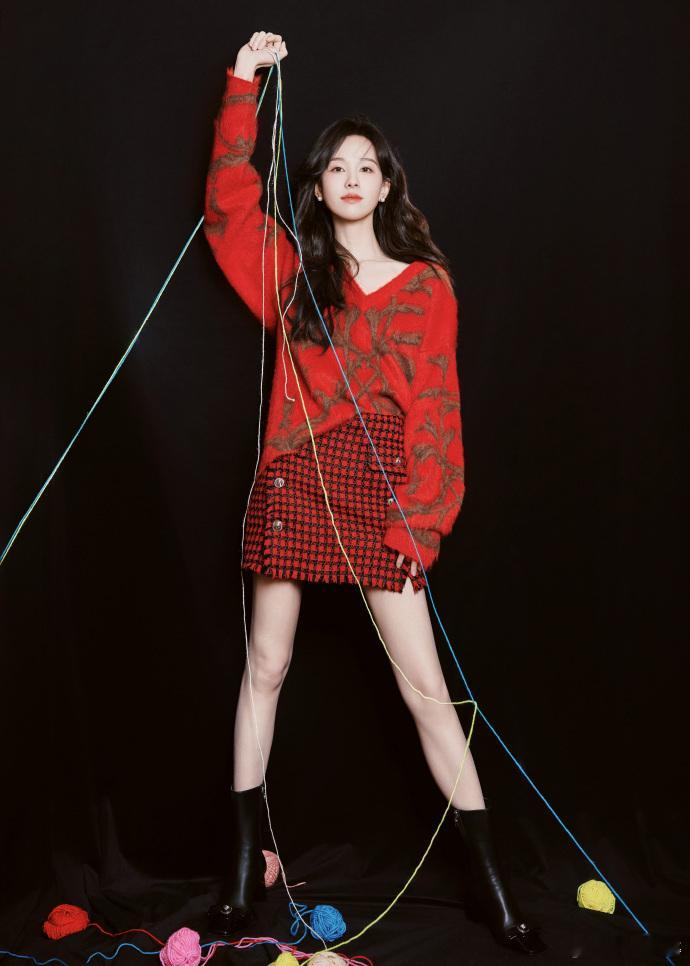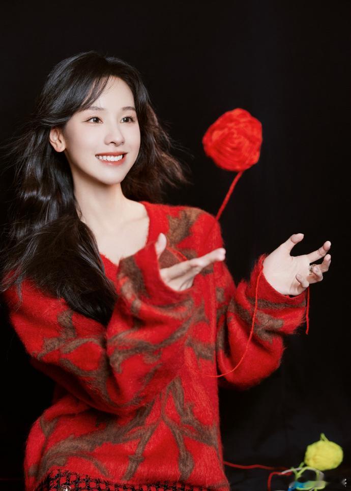#陈都灵V领红毛衣造型#陈都灵V领红毛衣造型,小猫玩毛线球既视感,好可爱的陈都灵